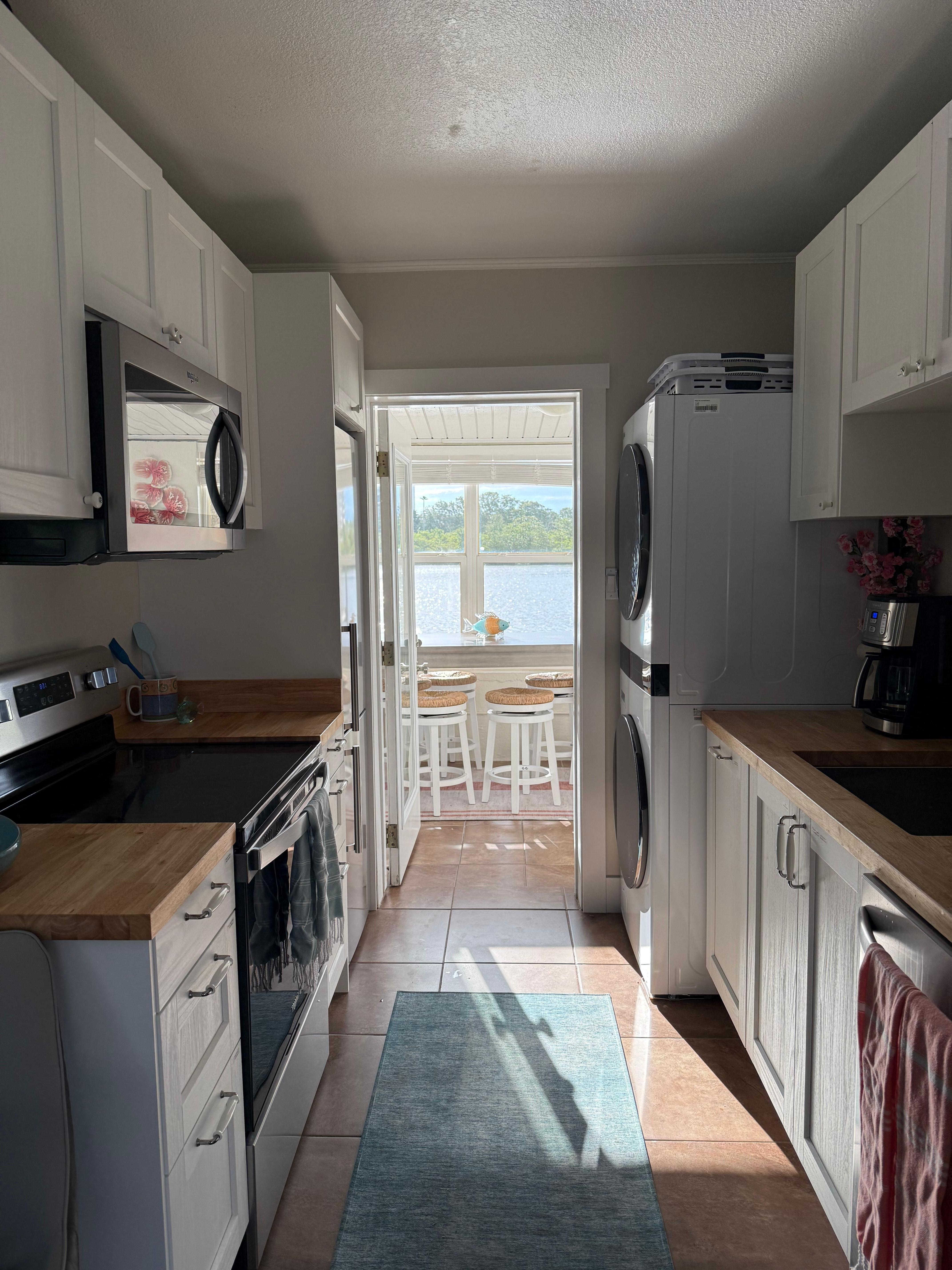 - Washer/dryer, full refrigerator/freezer, dishwasher, microwave, tankless water heater, & stove/oven