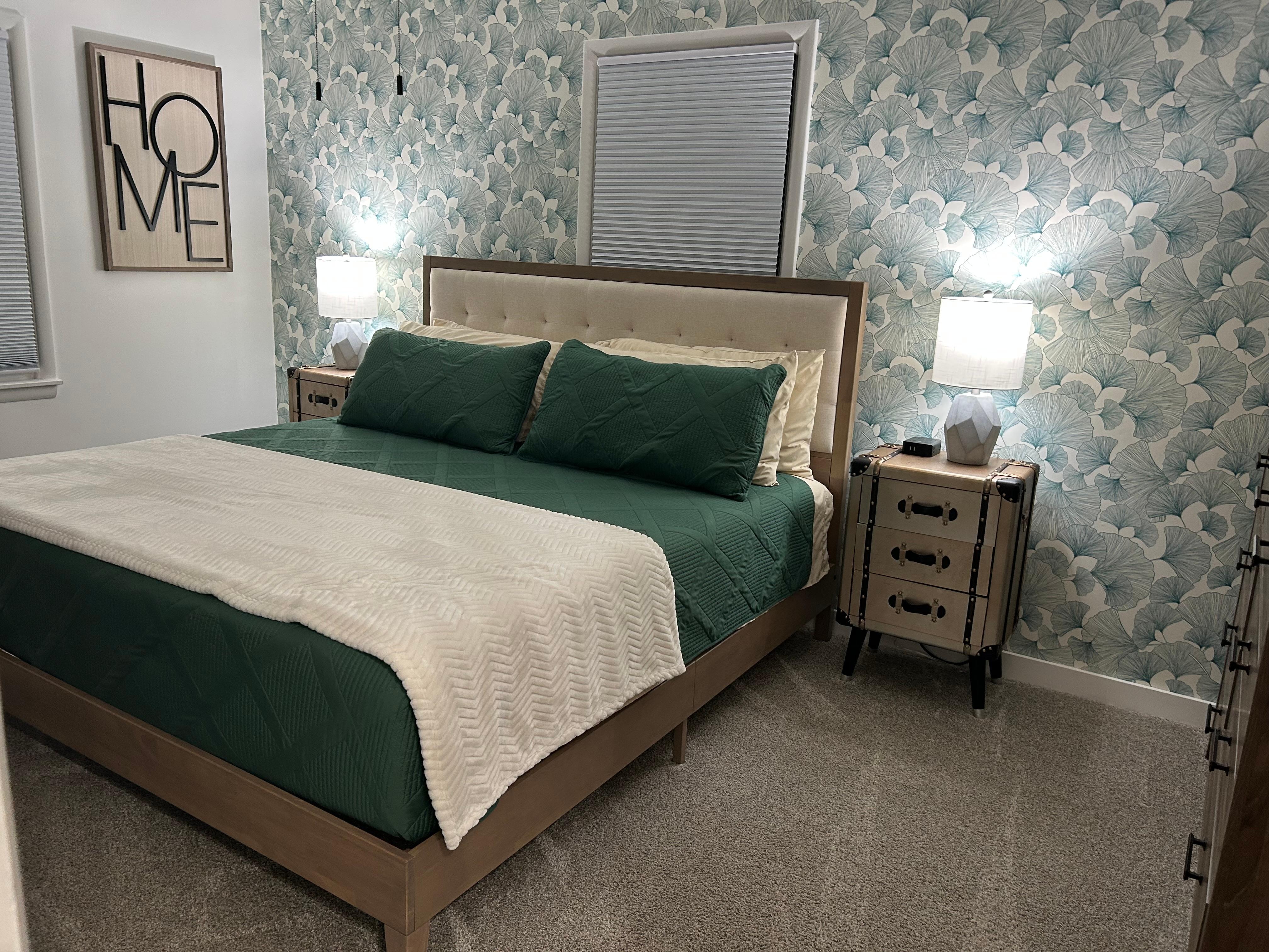 Welcome to Gingko Getaway, a freshly updated two-bedroom, one-bathroom brick ranch. With ample parking for up to four guests and their visitors, this inviting retreat is perfect for any stay. The living room offers a plush couch and a 65” wall-mounted TV. Both bedrooms are thoughtfully designed for a restful night’s sleep. The king bedroom features a high-end mattress, dedicated workspace, and a 50” wall-mounted smart TV. Nightstand outlets and a luggage rack add extra convenience. The queen bedroom is equally inviting, with another premium mattress and 50” wall-mounted smart TV for a cozy retreat. The kitchen is fully stocked and guests are welcome to enjoy complimentary coffee, creamer, and snacks. In the bathroom, you will find a tile walk-in shower, hair dryer and complimentary toiletries. Located within walking distance of downtown Fortville’s charming shops and restaurants.