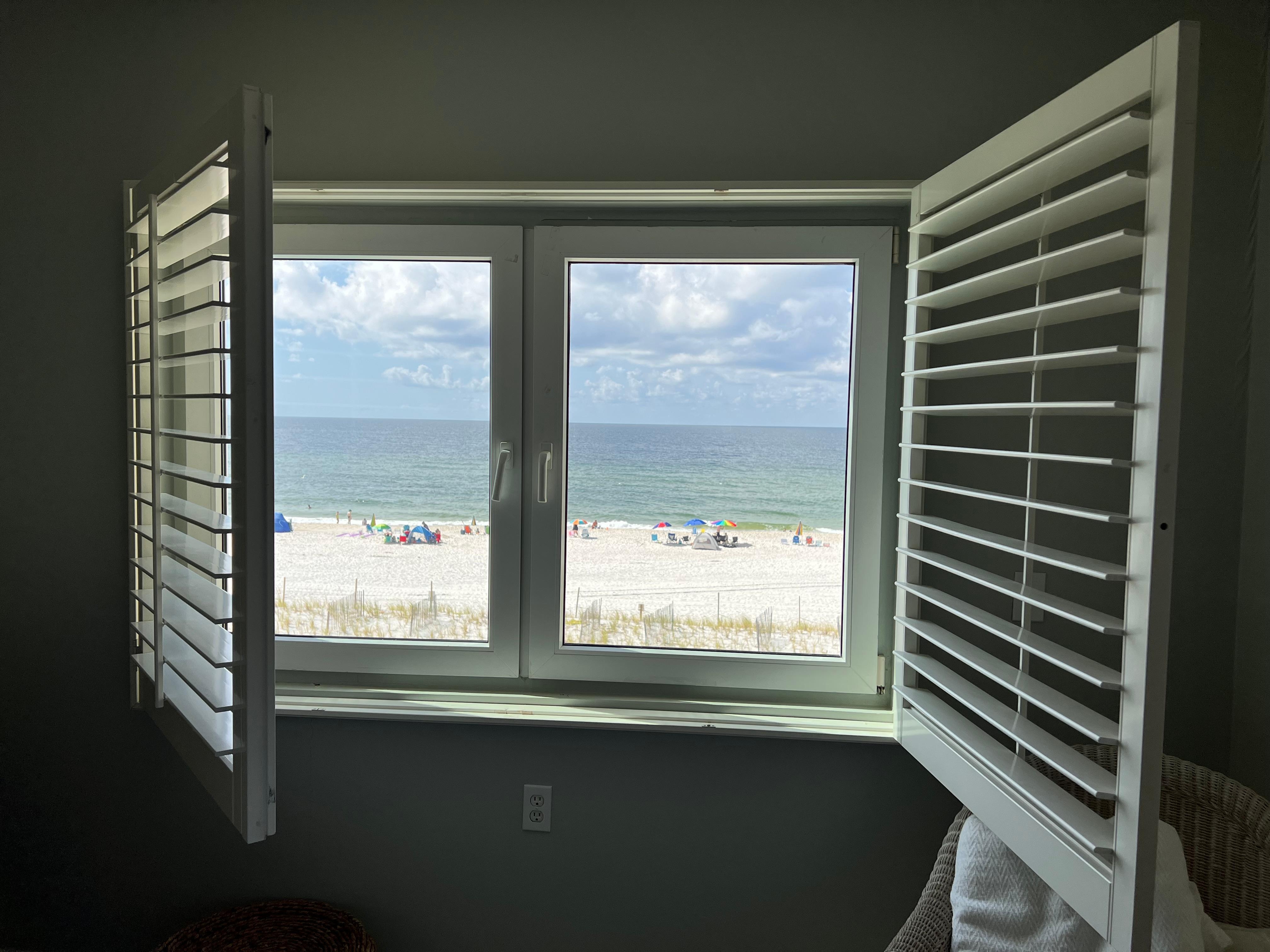 The large living area has a balcony overlooking the Gulf with its glistening water and white sand beaches. It is provided with a large Roku TV.