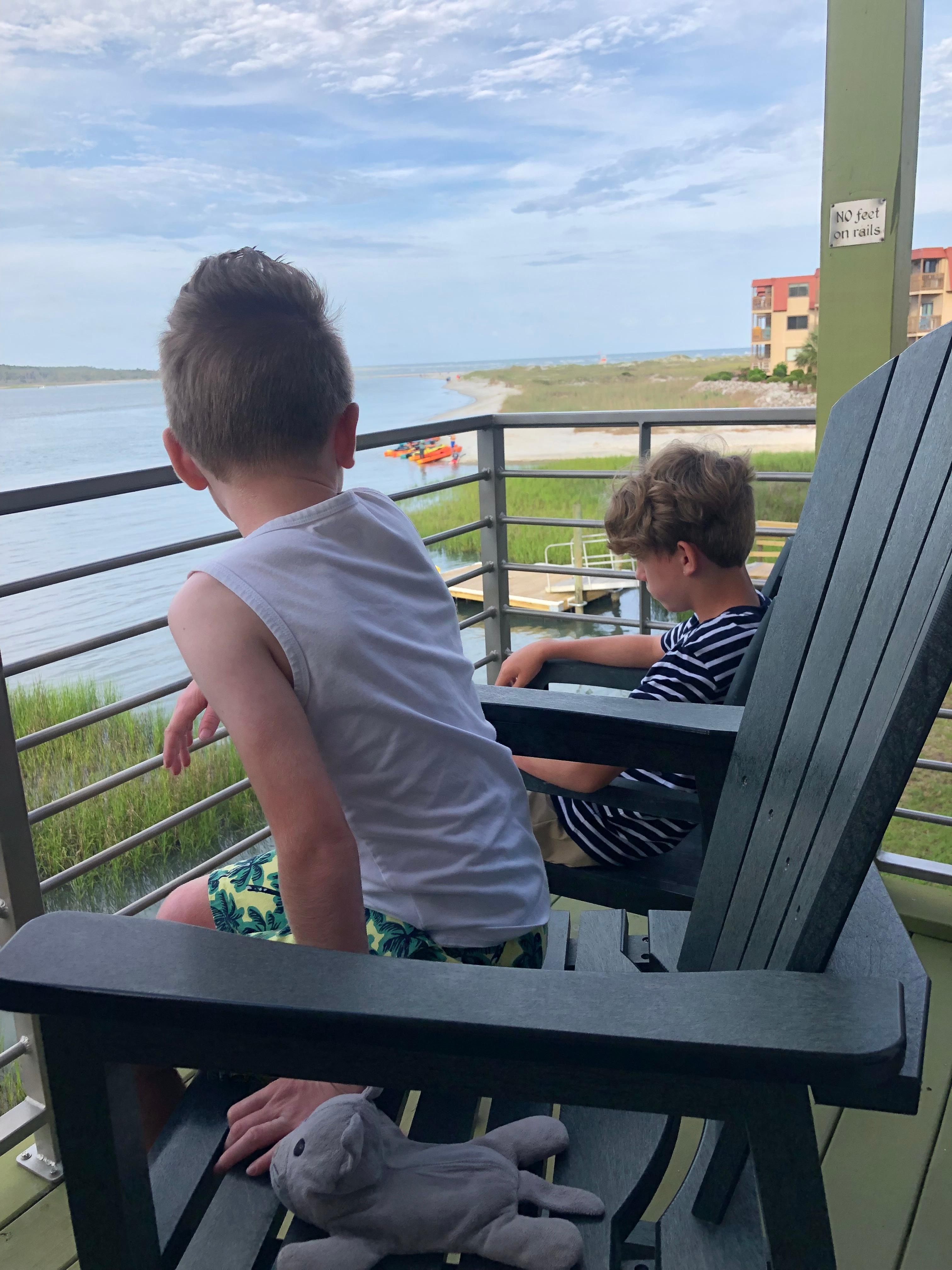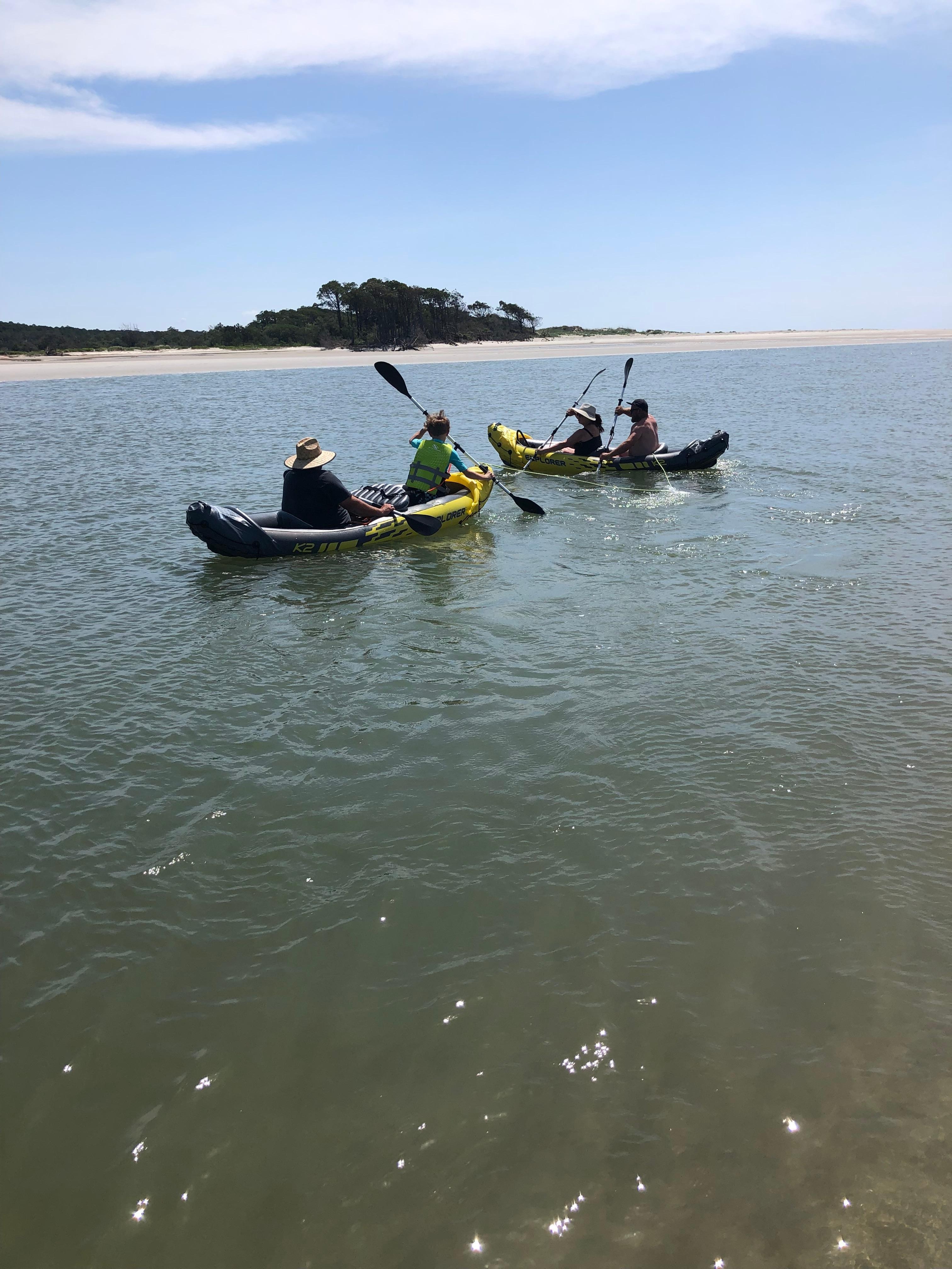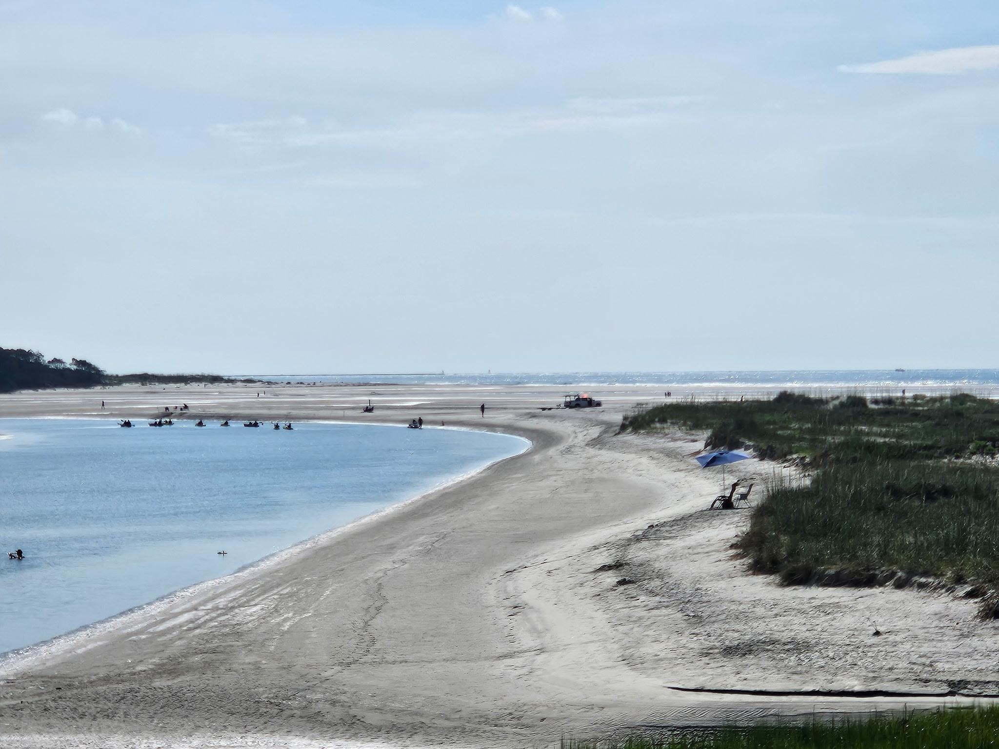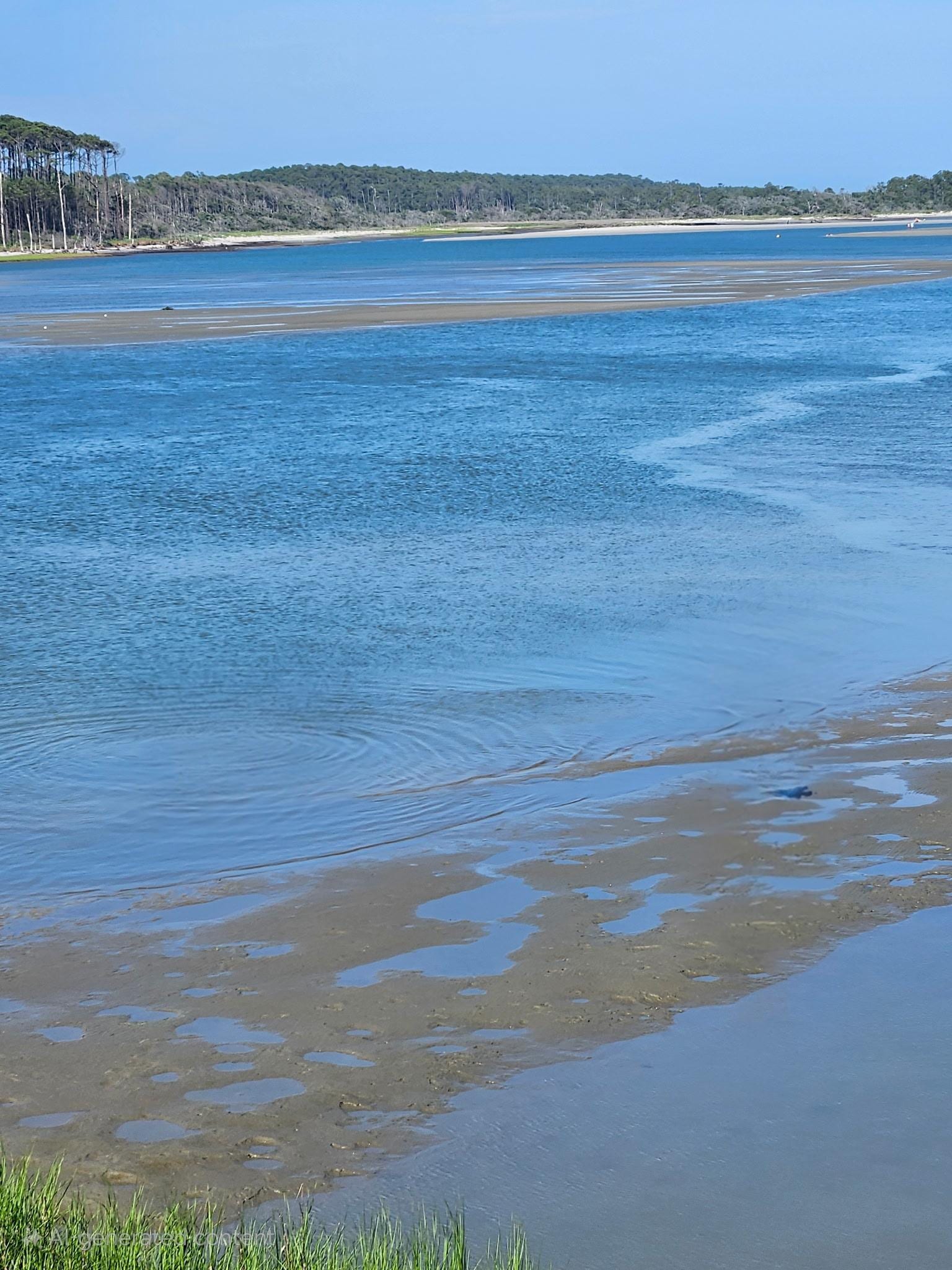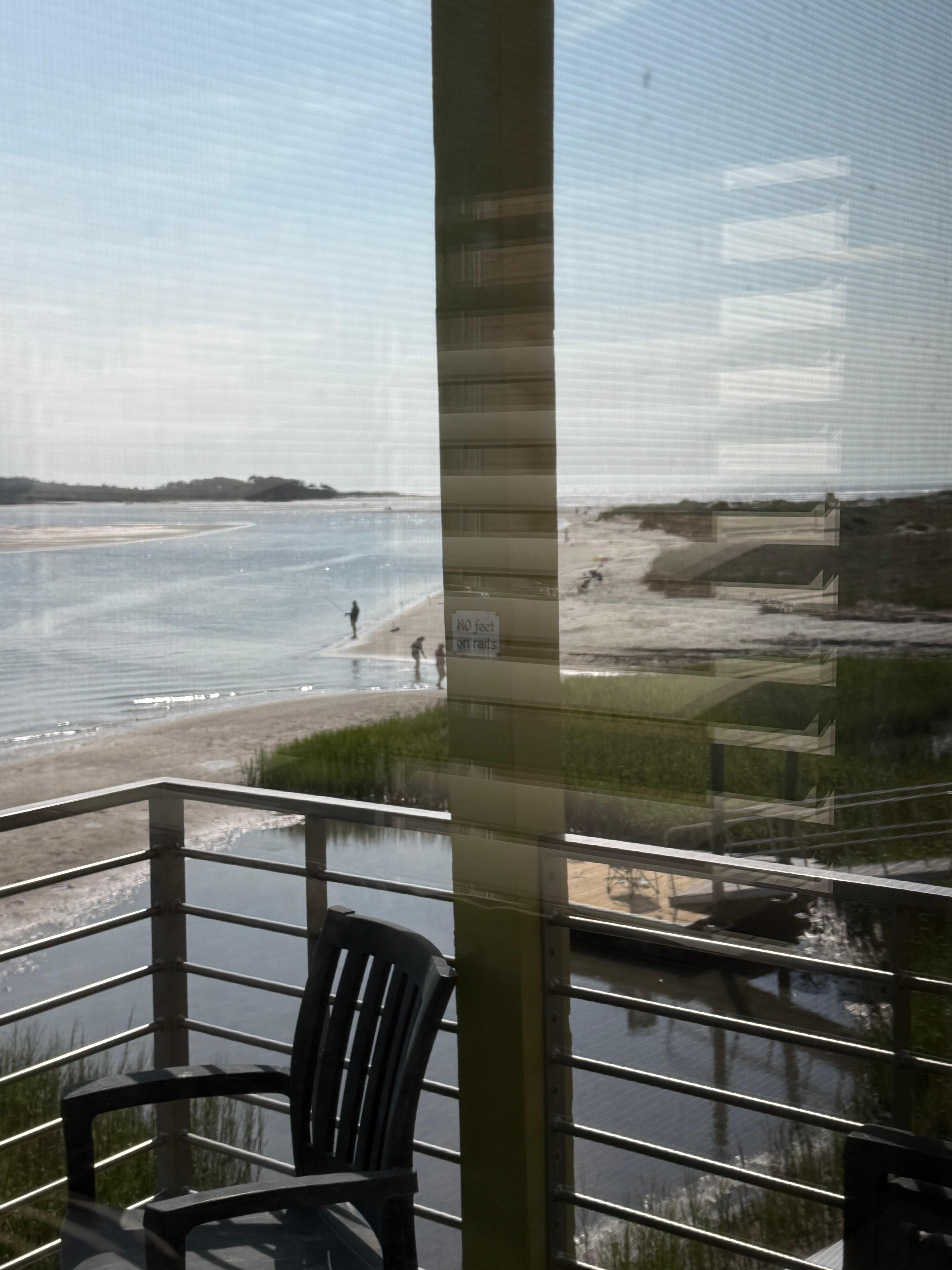 The property has a private pier on a small creek that leads directly to Hog Inlet and on to the ocean. The point is constantly changing due to currents, tides, storms, and a recent beach renourishment. A WetSteps seven step stairs are now used in order to access the water and beach from the pier (as seen in the photos). Look at the photos for the differences in the sandbar (that connects to the point) from low to high tide. The most recent photos were taken at the end of August 2022. Since we are no longer allowed to have our floating dock, there is no way to securely tie a boat or kayak. Therefore, unattended watercraft are not allowed.