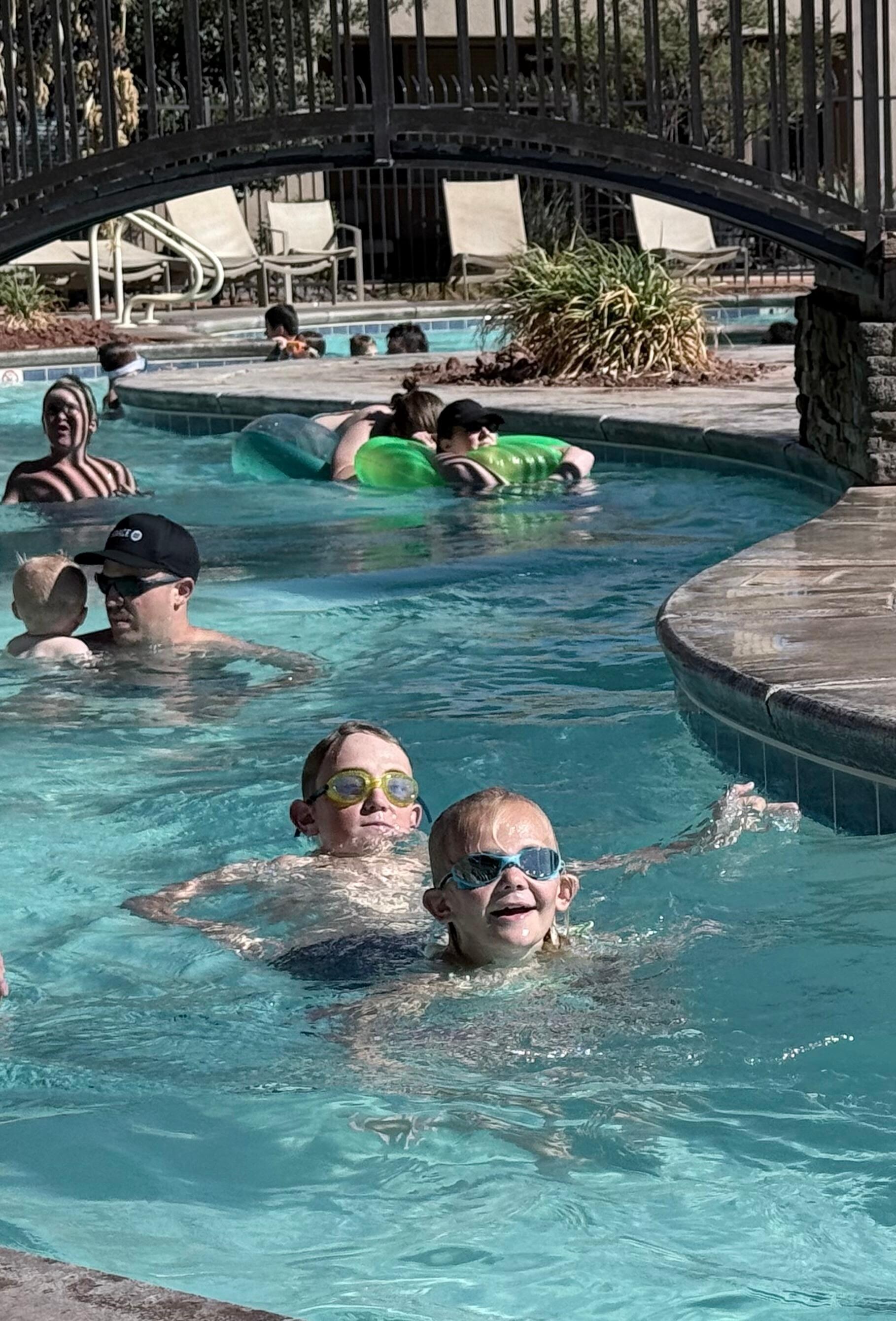 Located in Santa Clara, this townhome is a dream. With 3 bedrooms including 2 king beds and 2 bunk beds, along with 3 1/2 bathrooms equipped with all the essentials, guests will feel right at home. Each bedroom has attached bathrooms. The additional living room space with a cozy sofa bed is perfect for relaxing after a day of exploring. This superb property also offers AC, heating, a washing machine and dryer, WiFi, ping pong and a patio with BBQ and fire pit. The living space as well as all the bedrooms has TVs. The kitchen comes well equipped for those who want to cook and feel at home. Close to the property is a place for RV parking. The property has 2 upper pools and a hot tub that are heated. The large kid water park boasts an amazing slide with a lazy river as well as another hot tub to enjoy. All pool areas have surrounding lounge areas to relax and enjoy the sun. While in St George area there are beautiful places to visit such as Zion National Park and surrounding golf courses. We think our place will help you experience everything Santa Clara, St George and surrounding areas has to offer.