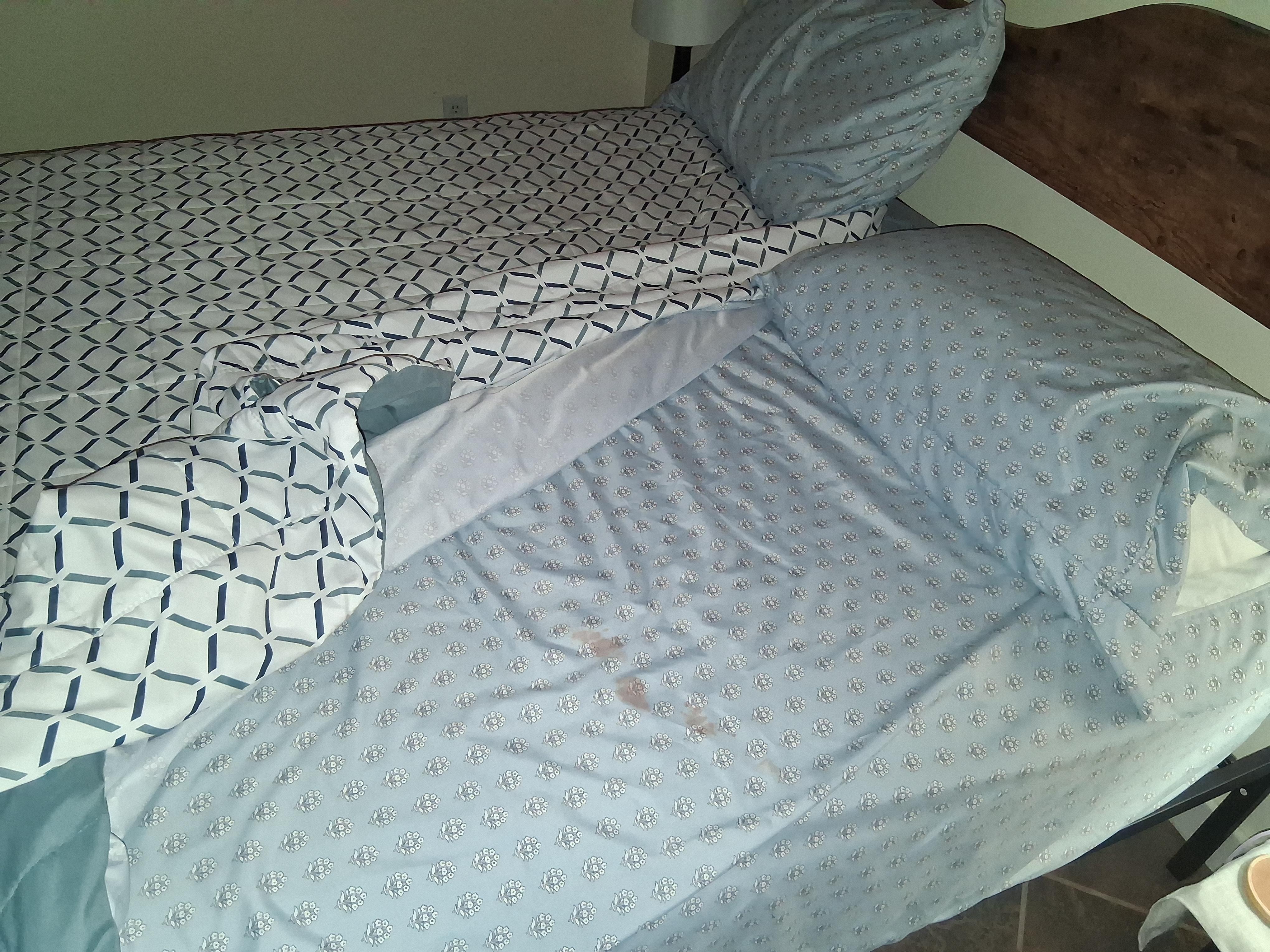 When trying to locate the Cosita. The link that was given in the VRBO email was wrong and took us 8-10 minutes in the wrong direction. Super frustrating when youre in an unknown area with a TON of construction.When we first walked into the Cosita we were IMMEDIATELY hit with an unpleasant smell. I cannot really describe the smell, but I'm wondering if it may have been the water (possibly hard water?). I don't think that was it, but I don't know what else it could have been.When trying to pull out the hide-a-bed, it was VERY difficult. Almost as if the metal was bent or something. We were finally able to get it out, however, upon leaving we left the bed out as it did not go back in easily and I did not want to take the risk of any damages.The queen size bed was VERY creaky, but even more disturbing was when I pulled back the sheet to go to bed and found blood stains!!!! GROSS!!!!
