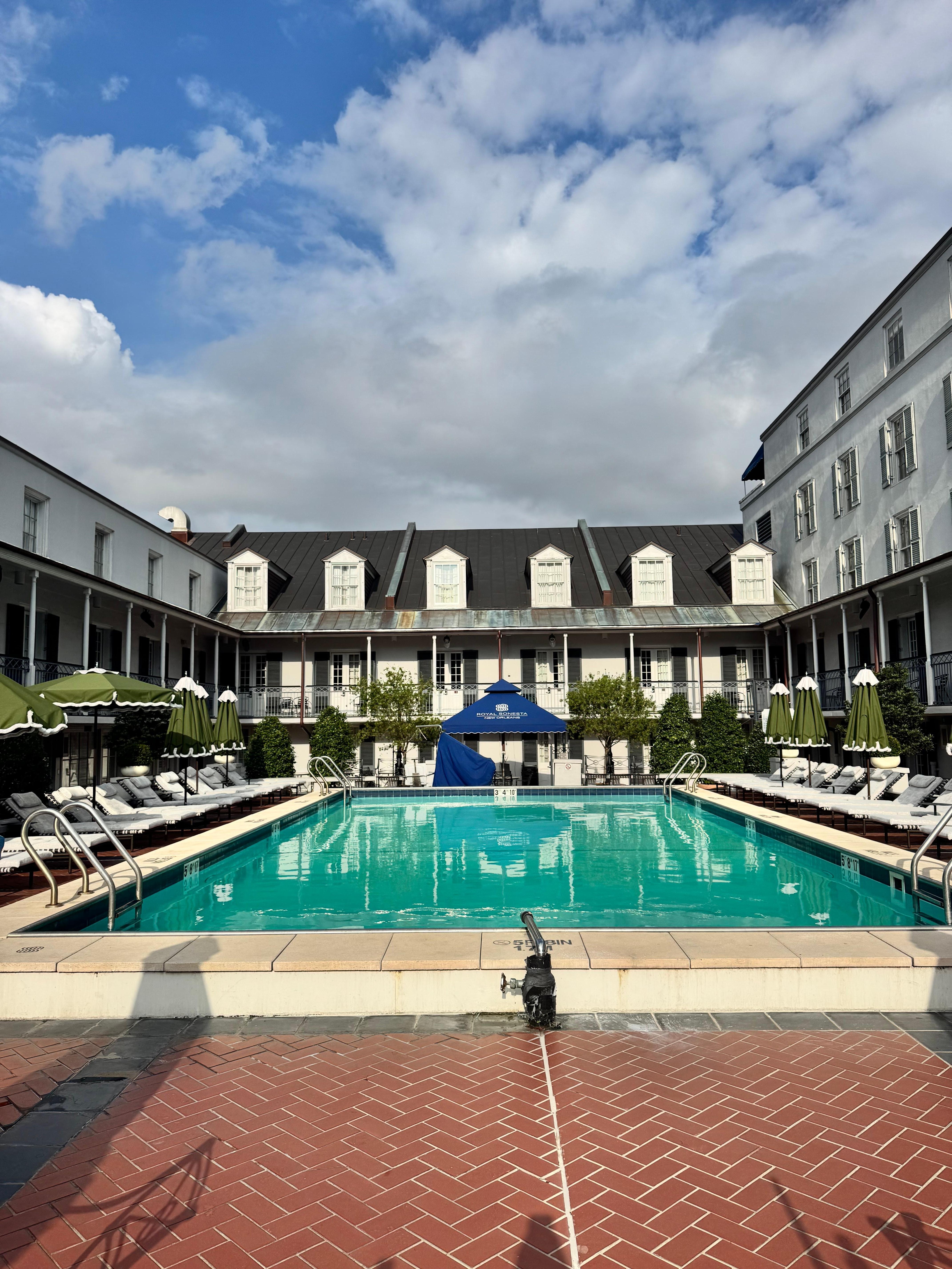 Welcome to our unique spot combining luxury with comfort. Our property spans a city block, offering rooms that face either the peaceful courtyard with a lush pool deck or the historic French Quarter, some even have balconies. Your room features a desk, beverage fridge, and coffee maker. Enjoy our modern fitness center or relax in the outdoor pool. We offer a business center for your needs. For dining and entertainment, choose from PJ’s Coffee House, Desire Oyster Bar, Restaurant R’evolution for upscale meals, Le Booze Sports Bar, and the Jazz Playhouse with live music.
