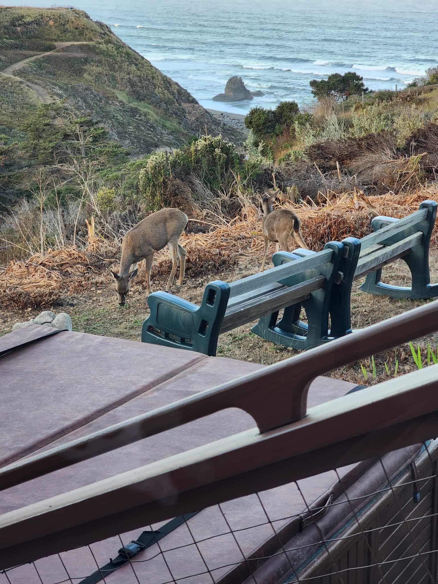 With beds for 10 or 11 people and a great room walled around with glass, two of three bedrooms opening to the huge deck and the ocean-view spa, you'll be watching wildlife and be able to walk to the beach, or drive & park by the sand. We have 2 queen bedrooms, twins in the third, and a loft with 5 twins, dormitory style, plus 2.5 bathrooms, a 2 car garage with laundry, fully-equipped kitchen w/ spices, wood fireplace with oak wood furnished, Dish Satellite TV and free internet , stereo w/ lots of CDs, books, videos, games, etc. All linens provided. We just ask that you clean and put away the dishes you use and put the used linens on the washing machine when you leave.i