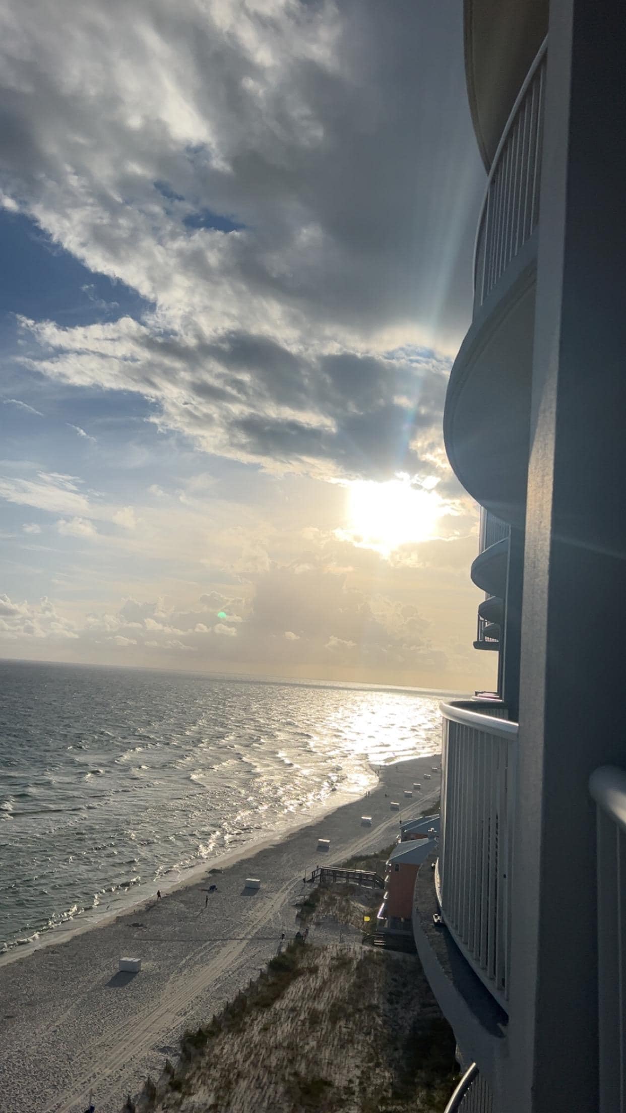 Our balcony is the best! Upscale outdoor furnishings and over 350 sq ft facing the Gulf of Mexico. You have a 270~ view of the Gulf of Mexico, white sandy beaches, Little Lagoon, downtown, and front row seats for the 4th of July fireworks from the Gulf State Park!