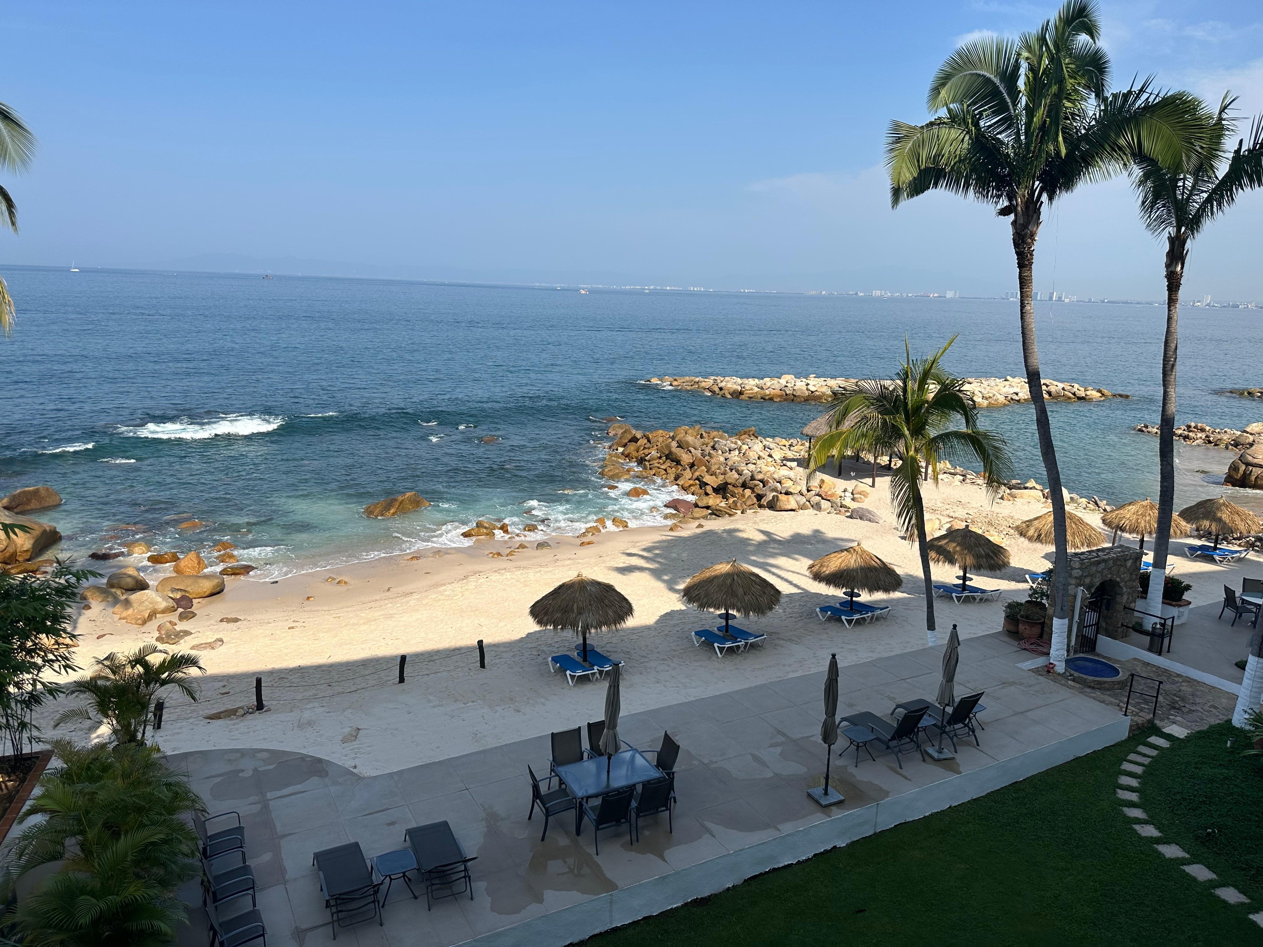 From the pool area, a picturesque stone arch and stairs lead to private beach palapas with beach lounges set out daily by the condominium staff. Enjoy a beautiful walk down the sandy beach while you look for seashells. This beach is unlike most in PV - No crowd and no need to stay at a crowded resort to enjoy the magic and natural beauty. The dynamic beach has both soft sand and sculptural rocky outcroppings. A newly formed cove makes for entering the water to swim, snorkel, paddle board, or kayak very easy.