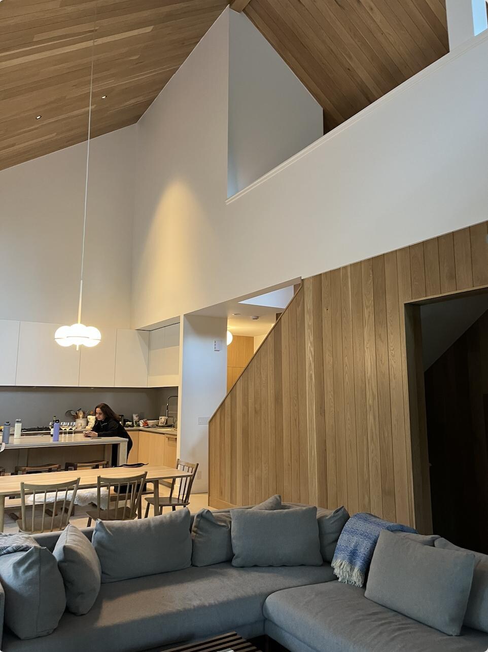 Upon entering the home, you'll be greeted by the warmth of the white oak walls and ceilings, which create a cozy yet sophisticated atmosphere. The living areas are designed to offer ample space for gathering, whether for a quiet evening by the fireplace or a special family gathering. The gourmet kitchen, equipped with top-of-the-line appliances, opens up to the main living space, ensuring that meal preparation is both a communal and enjoyable experience.