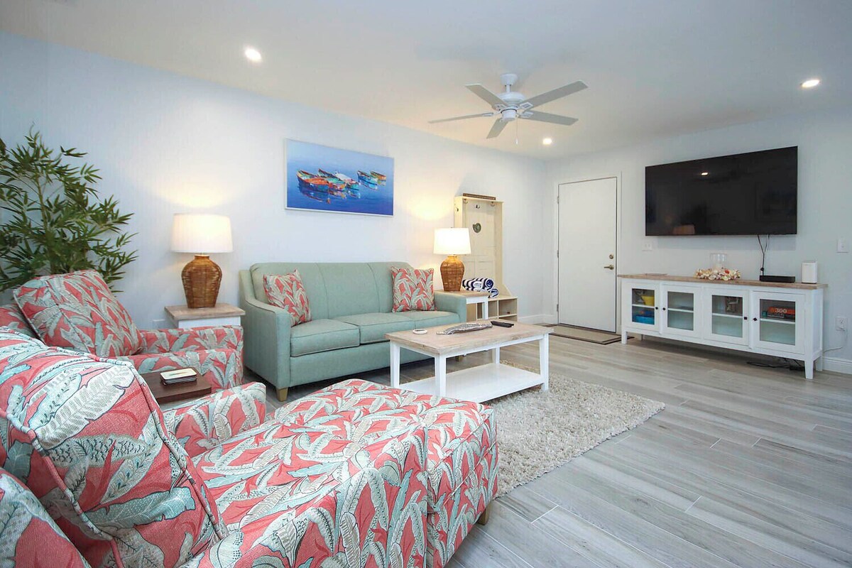 Sanibel Arms West perfectly fits you or your family from our 104 uniquely decorated and independently owned premium condominiums. Each fully furnished home away from home features a full kitchen, spacious living room, washer and dryer, and two lanais. It has resort-style amenities, including bike rentals nearby, tennis and pickleball courts, a grilling area, a sun deck, and a fitness room. With beautiful sunshine, brilliant blue skies, gentle waves, our pristine, private Gulf of Mexico beaches — all yours to enjoy, and home to some of the best shelling in America. Or opt for the comfort and peace of Sanibel Island’s only screened-in outdoor resort pool, with an on-site rental office.