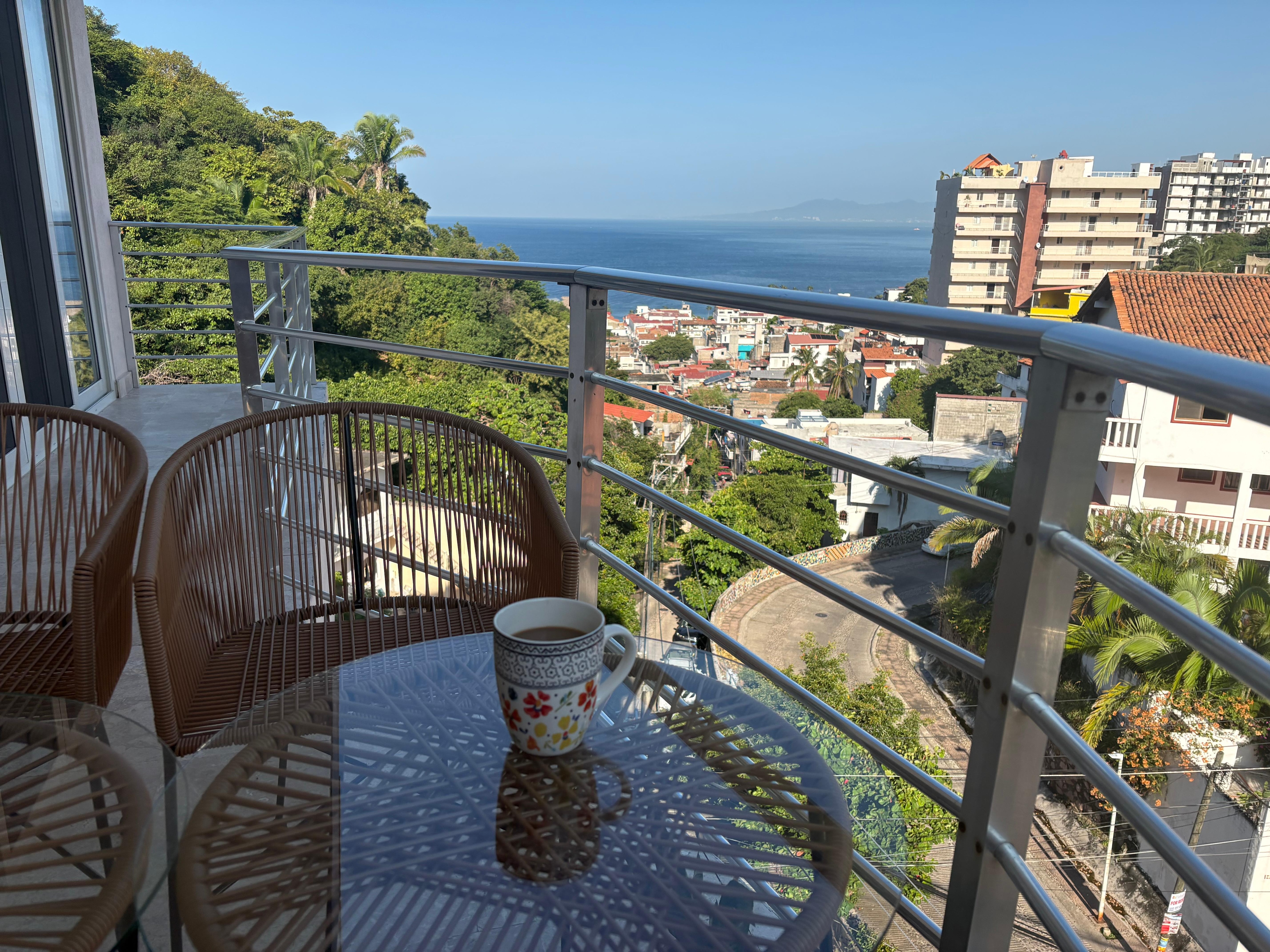 Escape to this boutique 5 unit condominium in picturesque Puerto Vallarta with a wonderful view of the bay of Banderas. Each unit is one full floor of the building. The unit has just been completely repainted and decorated in 2025. Situated in a lovely vale on the side of the hills with a 10 minute walk down to the Malecon, gallery district and the downtown night life. The 3 bedrooms include 1 king bed and 2 queen beds. The bedrooms have plenty of closet space, too. The property offers a pleasant retreat for guests away from the hustle and bustle of downtown. The unit has a full size kitchen with dishwasher, gas range/oven, microwave and water filtration system for the kitchen sink. Also enjoy the convenience of amenities like AC, WiFi, and new washer/dryer in the unit. The unit features lovely travertine tile floors. The two - 3/4 baths are fully tiled in travertine tile with alabaster vessel sinks. Take a plunge in the refreshing swimming pool or prepare a lovely meal on the terrace grill to share as you watch the whales breach in the bay. Once inside the building there is an elevator. There is a community staircase that takes you to the entrance of the building. There are numerous restaurants, bars and eateries in the neighborhood and a full size grocery about 4 blocks north of the Malecon. The building bylaws require us to state there is a maximum occupancy of four adults over the age of 30. No children. There is parking available for one vehicle, if requested.