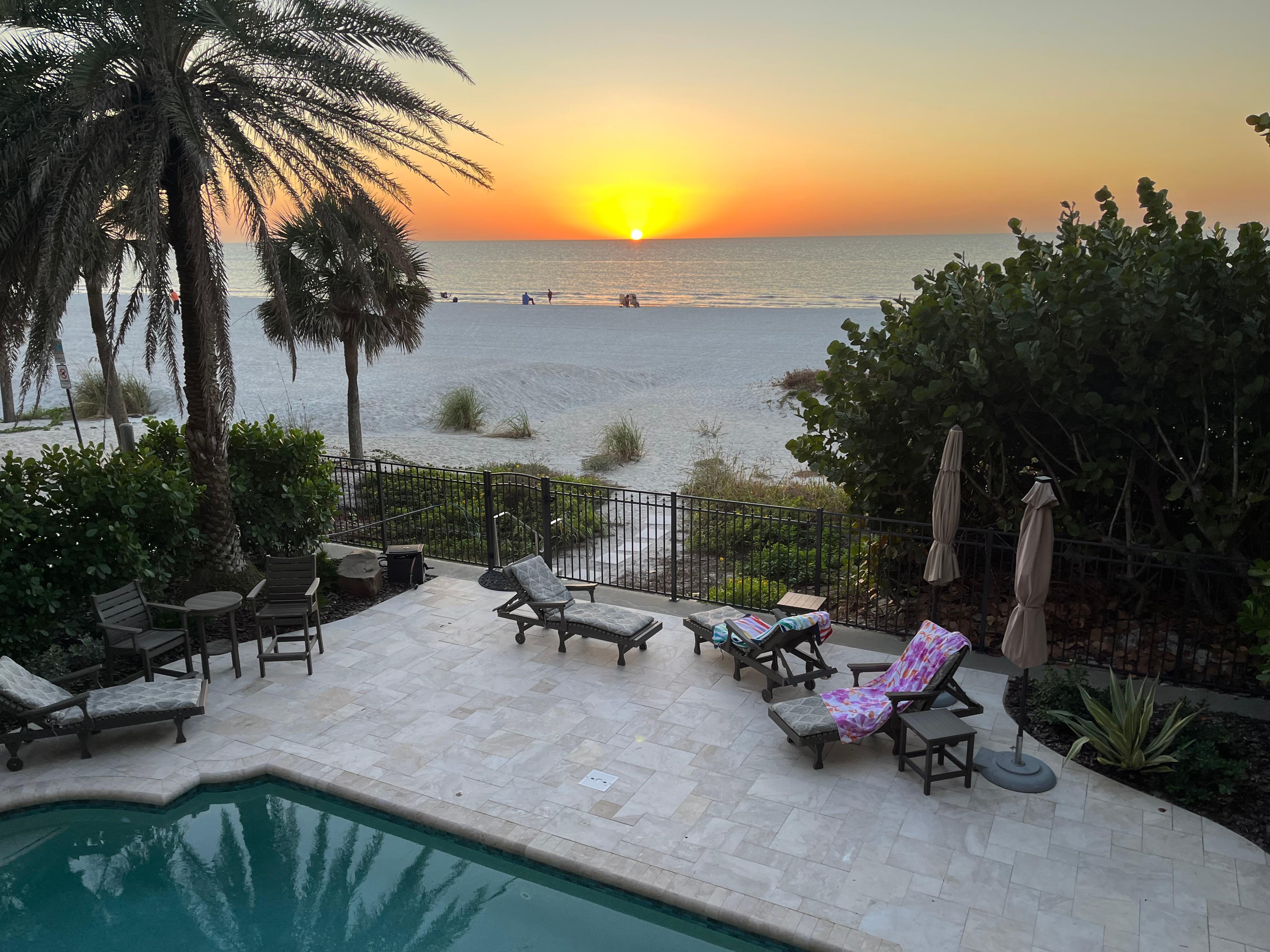2nd floor: Main floor, with huge kitchen, separate island with stools, huge DR table, large sitting area aimed outside at beach. Sliding doors to huge balcony. Everything is huge: house, furniture, accessories. A football team would be comfortable in this house!