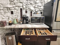 The property itself is wildly unique! One of few houses made of bottles in the world - and maybe the only one you can vacation at. The beautiful design and colorful lighting through the thousands of bottles give the home a majestic feel. On top of that, artistic creatures are built into the property. There’s something fun and new wherever you look. Not a dull moment at the Tucson Bottle House!
