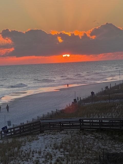 Beautiful beach front condo with sand in the toes beach access within 2 minutes from our door! It's perfect for relaxing with family or friends, with easy access to restaurants, shops, golf, etc. It's the perfect spot to see and hear the waves roll onto the shore from our balcony - or inside if you leave the doors open! Watching dolphins swim while enjoying your morning coffee on the balcony is awesome! Also there are times when the Blue Angels practice their rounds--so fantastic to watch their maneuvers above!!🐠
