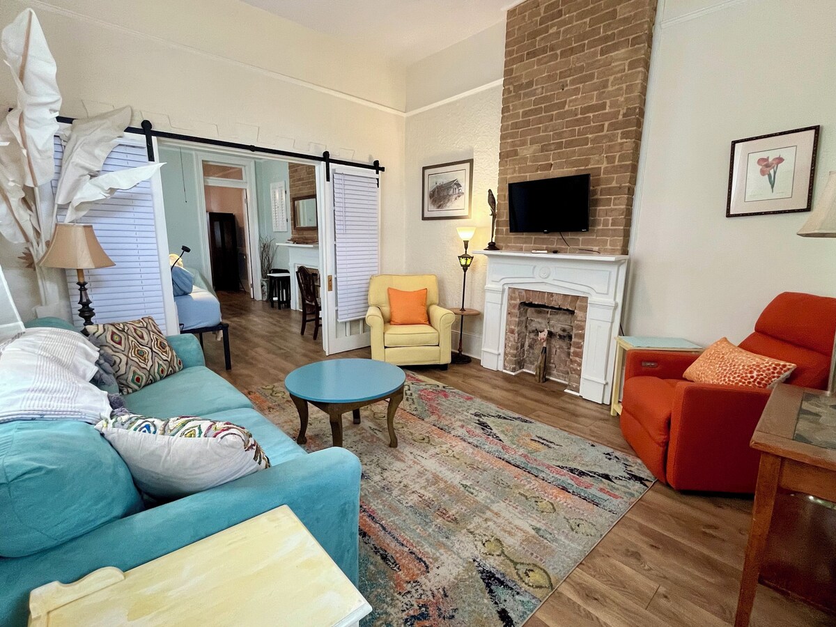 Newly renovated historic home is perfect for families, friends, and couples. Great for a short stay, it has all amenities to give you a stress-free visit and make you feel like you're at home. Big kitchen, beautiful bathroom and living room, front/back porch, and a washer and dryer. Stay awhile and unwind at this comfortable, two bedroom home. Please message with questions! I'm happy to help.