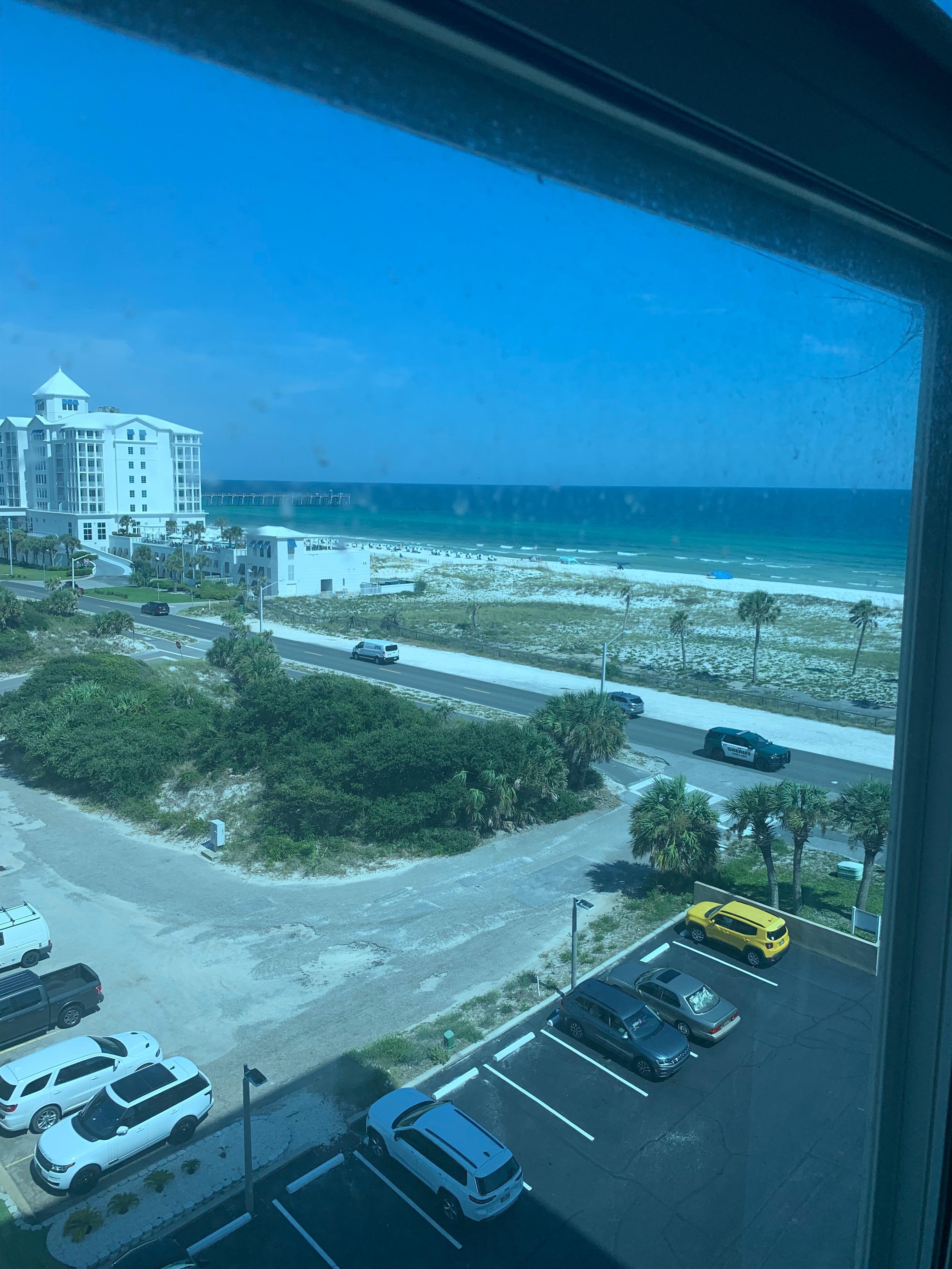 Sabine Yacht & Racquet Club is a twelve-story luxury high-rise condominium facing the Gulf of Mexico in the front and Little Sabine Bay in the back, with beach access across the street. We are on the 7th floor. You can take a scenic 5-minute walk to the heart of beach activities that include a stroll on the fishing pier, shopping, restaurants, and bars with live music. If riding sounds more appealing, a seasonal trolley stops at the front entrance of Sabine to transport passengers up and down the beach at no charge.