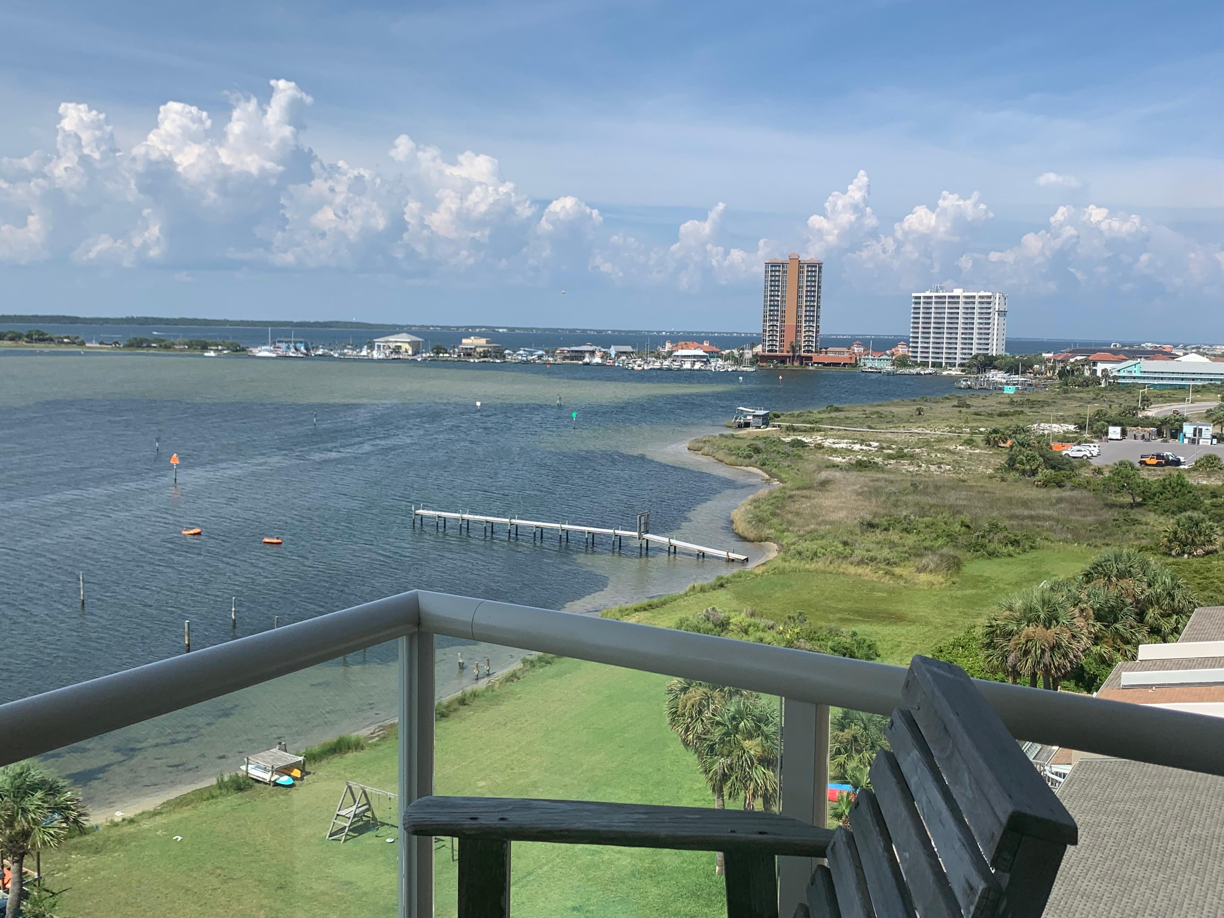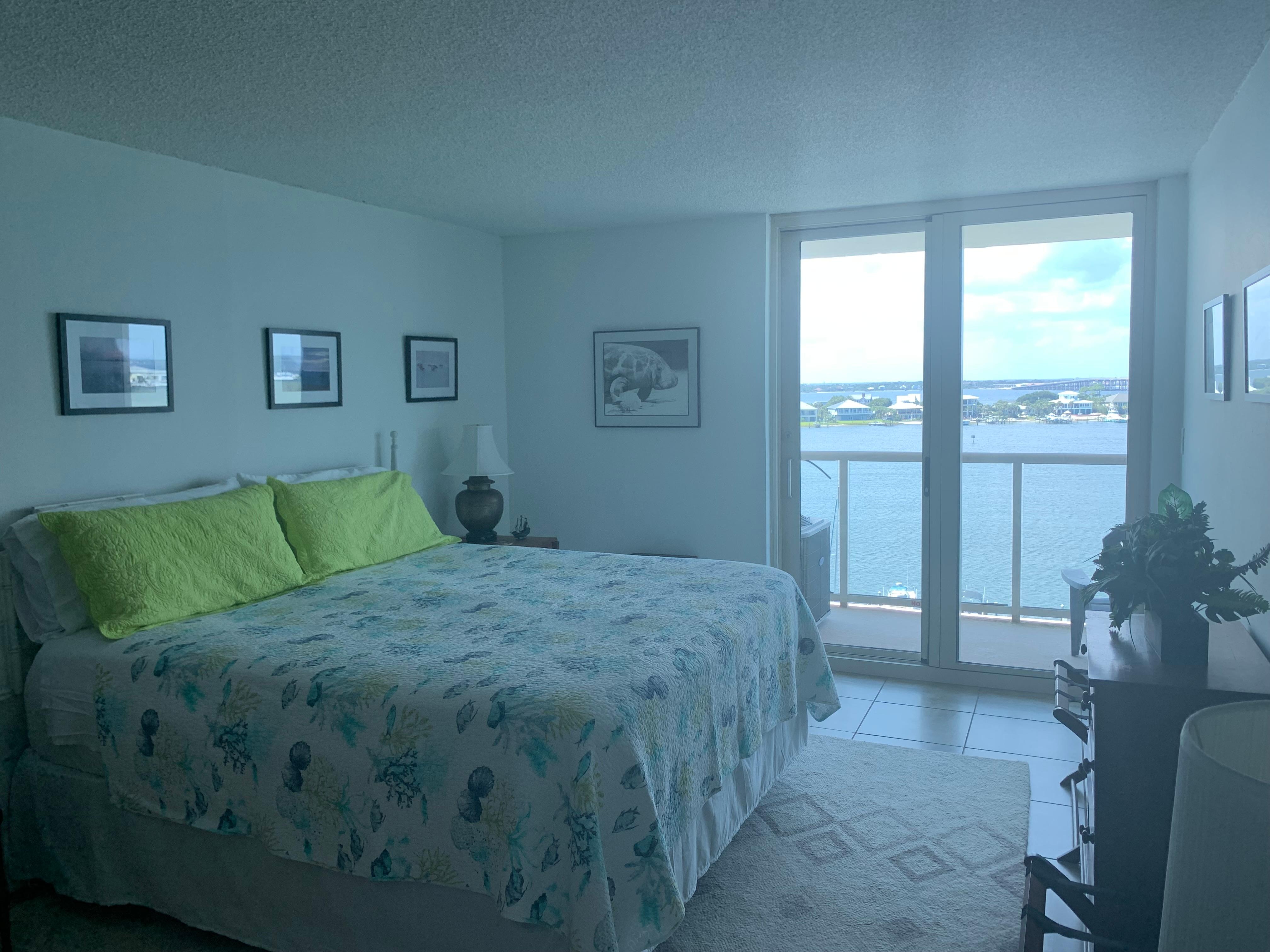 The master suite has a king-size bed, private bath and overlooks the bay. The second bedroom has a queen size bed a single and also overlooks the bay. This room has a closet to hang clothing and also a large dresser. Please note that there are NO blinds or curtains on the glass sliding doors/windows. I recommend bringing a sleep mask. There are 2 televisions and internet access. WIFI is available inside condo and the clubhouse. There is a large swimming pool on the north side of the building, overlooking the boat dock and Little Sabine Bay. Guests can enjoy tennis courts, fitness center, sauna and a boat launch. A boat slip rental is available. A bike and walking path runs in front of the building and the white sands of Pensacola Beach are directly across the street. Historic Fort Pickens is only 2 miles away.