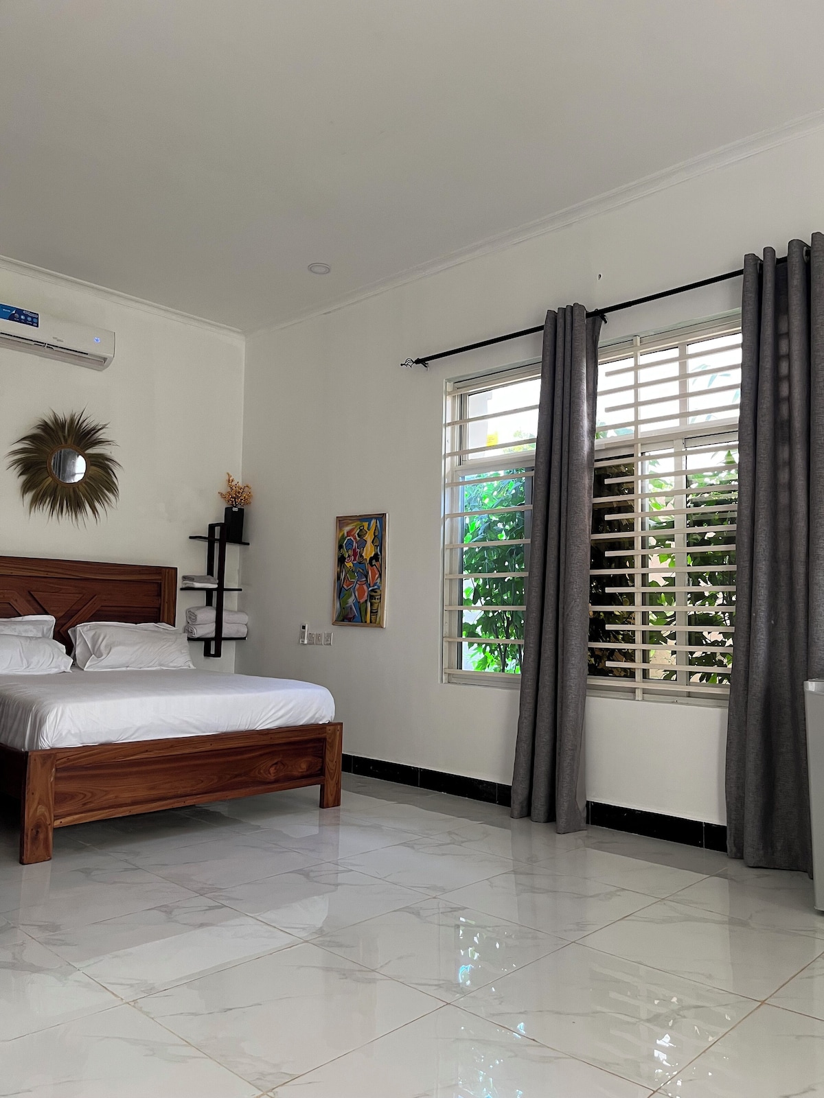 Relax in this cozy and a well-equipped apartment just a 10-minute walk from the beach. Enjoy high speed WiF, air conditioning, a comfortable living room, a full equipped kitchen, and an inviting outdoor space with garden seating and a BBQ area. Ideal for peaceful stay in the heart of Zanzibar, Paje.
