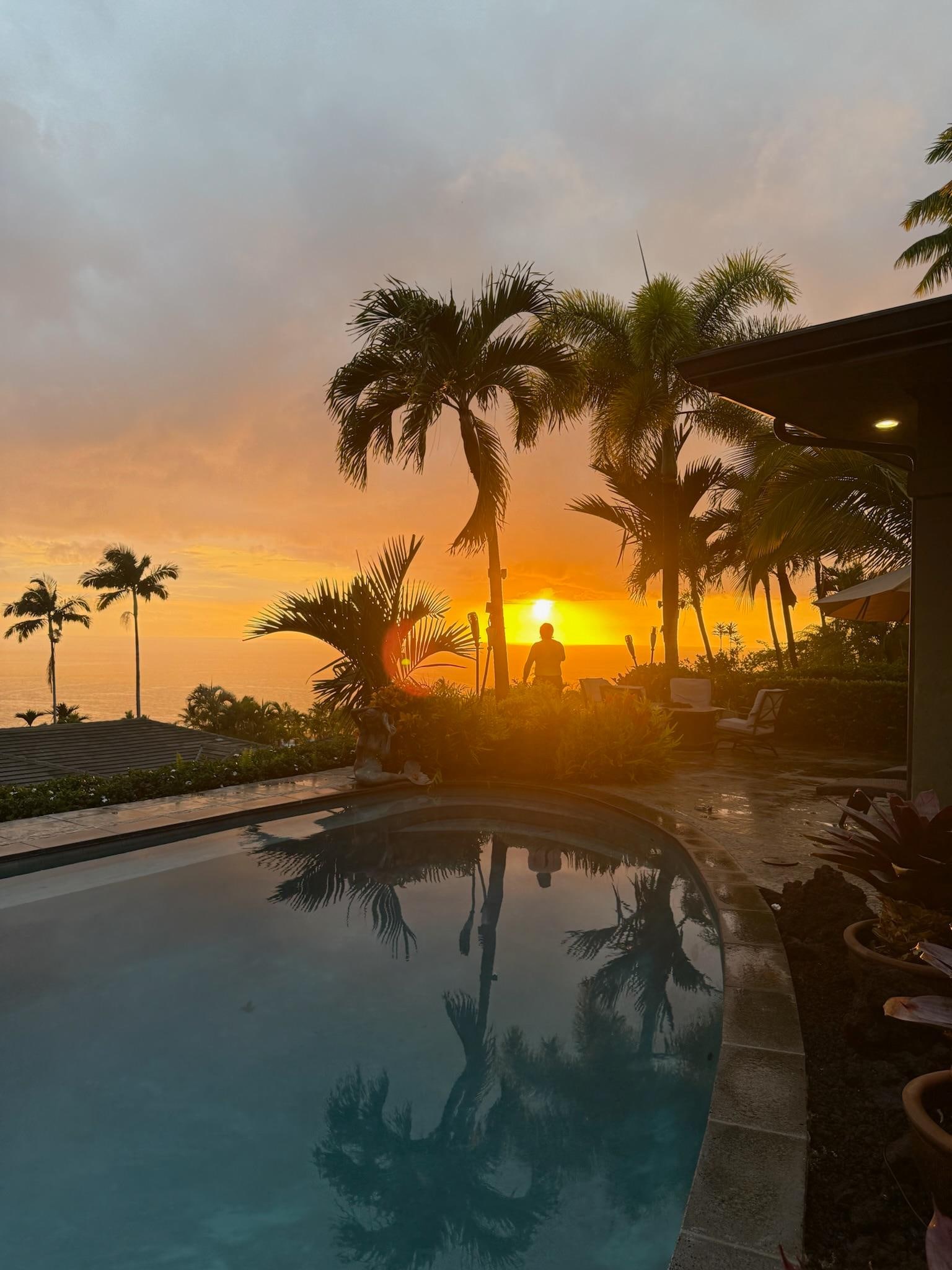 Within Hawaii it is all about the outdoors, so let's take you there! You will find an amazing lagoon-style pool with a waterfall spa. A bronze mermaid fountain adorns the edge and gives you a sense of serenity. There are six padded lounge chairs for tanning with 3 umbrellas, an 8 person stone top dining table and chairs plus a fire pit table, and four chairs for when the sun goes down. Oh, and everyone needs a tiki bar for mixing that perfect mai tai! The landscape surrounding you is one tropical jungle/paradise with hibiscus, bird of paradise, plumeria tree, and many palm trees to name a few. This all adds to the beauty and privacy of this home. We know you will never want to leave. So go ahead and begin your trip to paradise at 'Lani Hale'