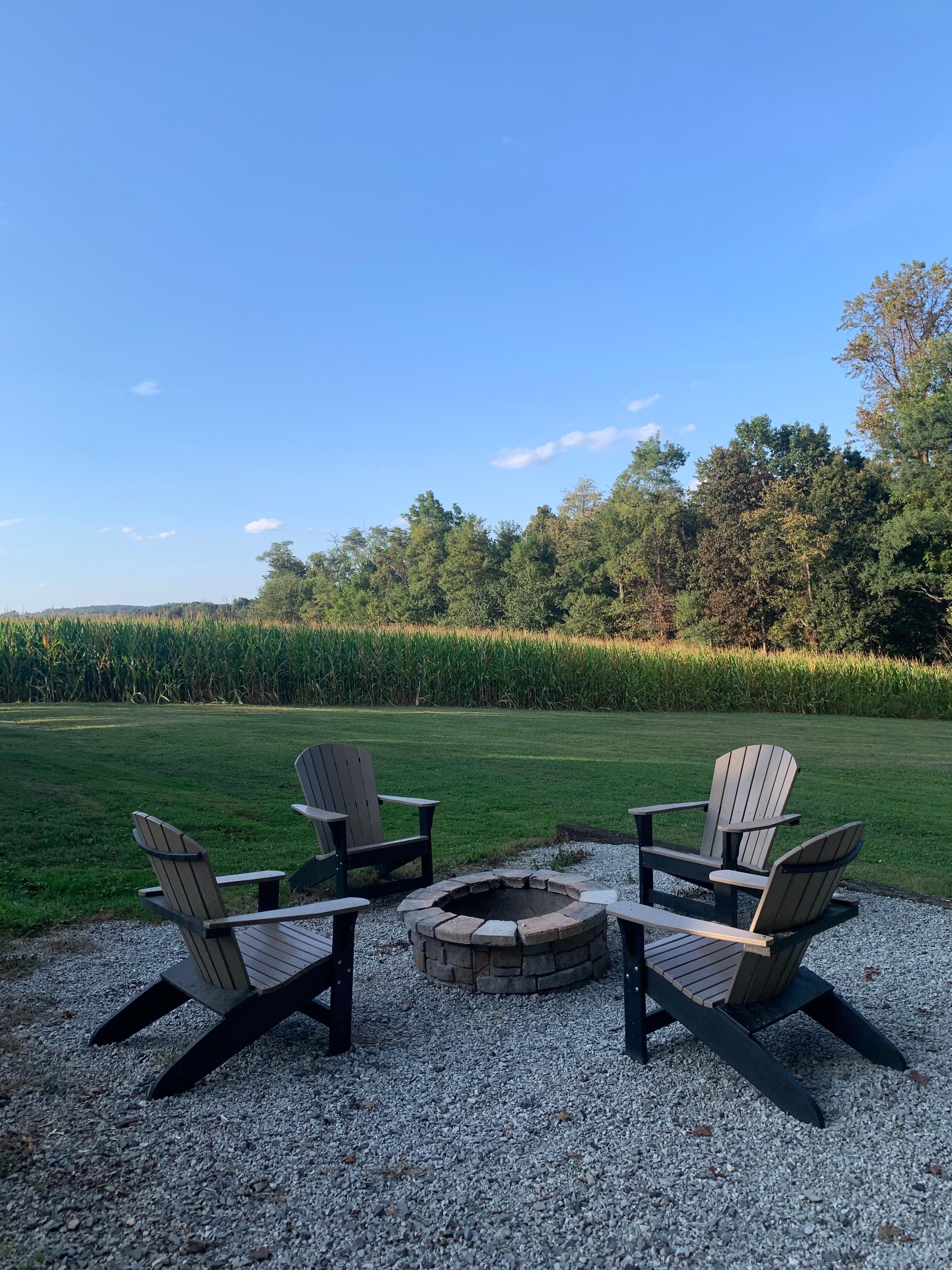Books, board games, playing cards, campfires, and wildlife sightings are the main forms of entertainment at Willow Lodge. A small working fireplace in the living room, available for use October through March, provides guests with a rustic, cozy atmosphere while taking the chill out of a cool autumn evening or cold winter's night. A picnic table and charcoal grill (charcoal not provided) is available behind the house with a beautiful view of the farm and picturesque South Mountains. Next to the picnic table is a inviting fire pit where guests may relax while enjoying an evening beverage, pleasant conversation or some quiet time....an especially welcoming feature after a long day of sightseeing or other area activities! Guests must supply their own firewood for the outdoor fire pit as well as the indoor fireplace as it is not included in the rental cost nor is it available in or around the property. Local grocery stores typically have small bundles of campfire wood available for purchase.