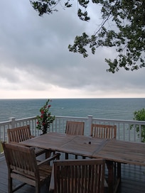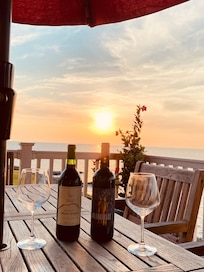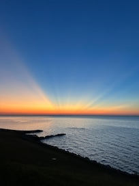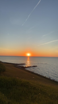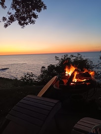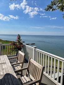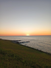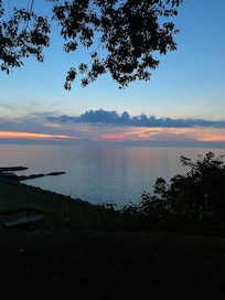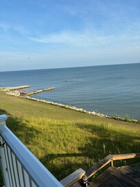 Beautiful, small, lakefront cottage modestly decorated in nautical theme, overlooking the lake. This is a quiet family friendly cottage. The spectacular sunsets sold us on this home, and we enjoy the nearby area, too. Situated amongst other weekend get-away homes, this is a fabulous spot to relax on the deck overlooking the grassy hill leading down to the water and watch the waves rolling in, the Great Lakes ships passing by on the horizon.
