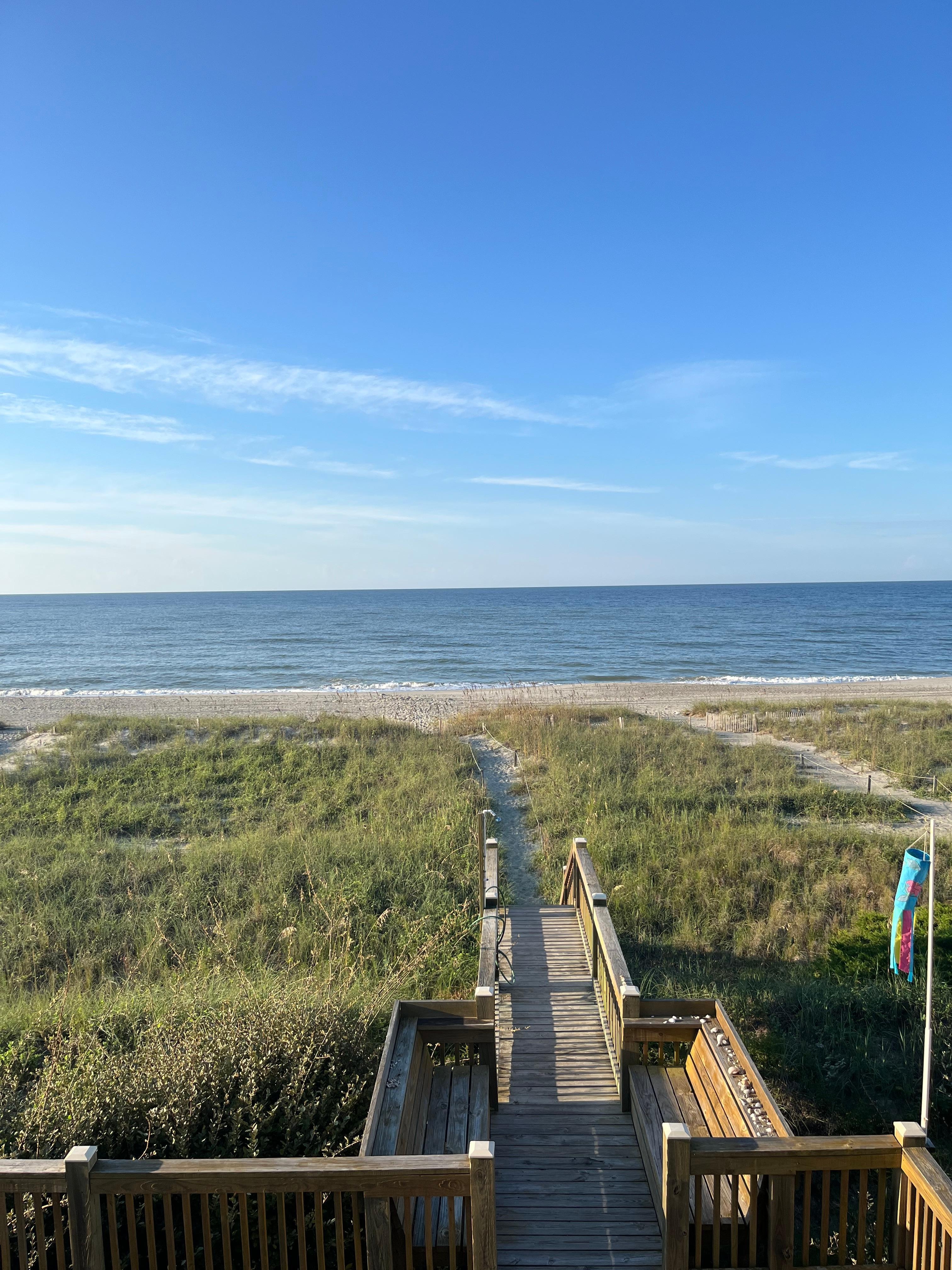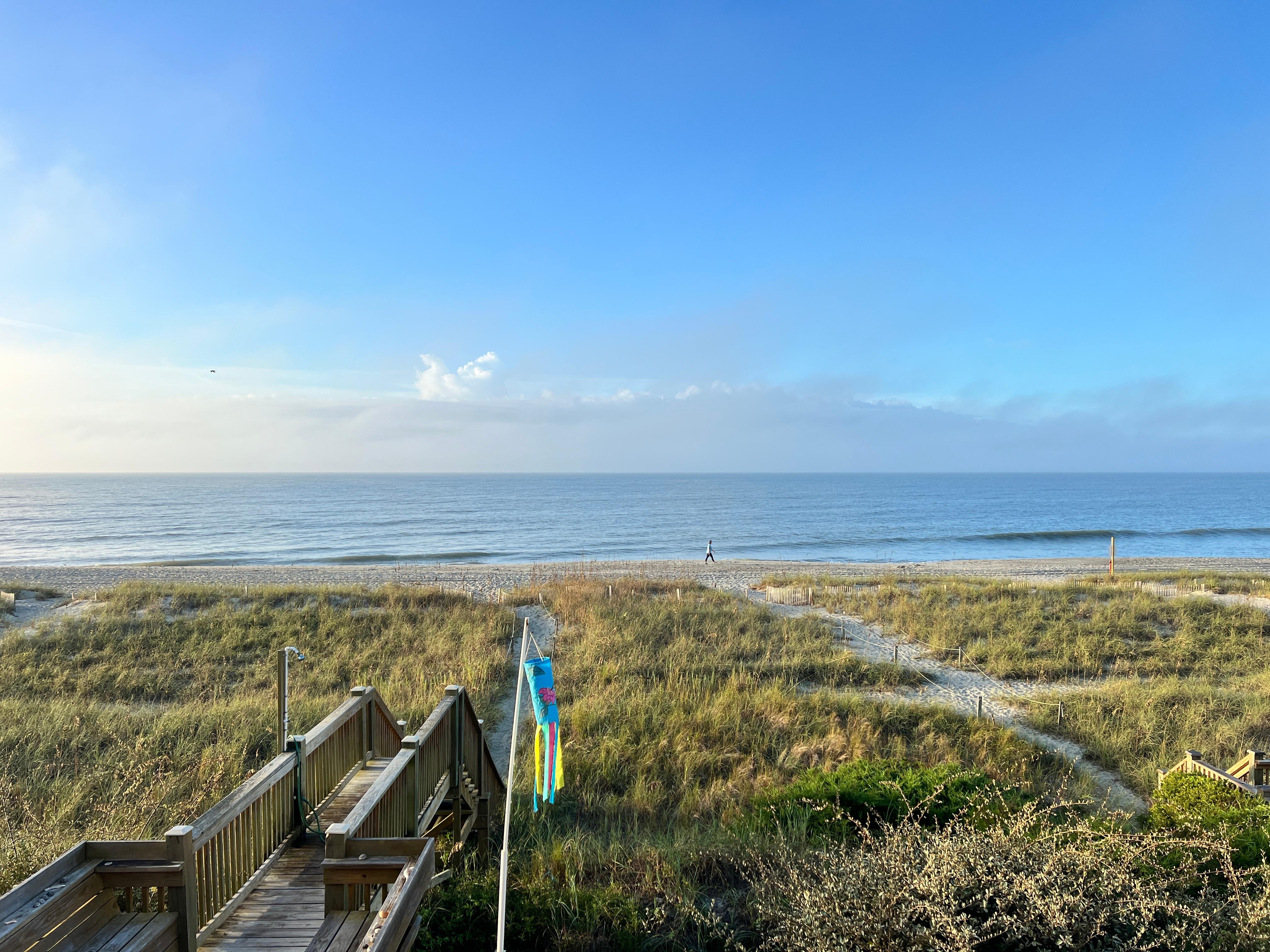 This unit has a full length front deck with marsh views, and a full length oceanfront back deck, so you can enjoy all that Holden Beach has to offer. A boardwalk right from your back deck takes you over the dunes to the ocean’s edge. You can also relax in the open air ground level common area where you will find casual wicker furniture and a charcoal grill. ENJOY!