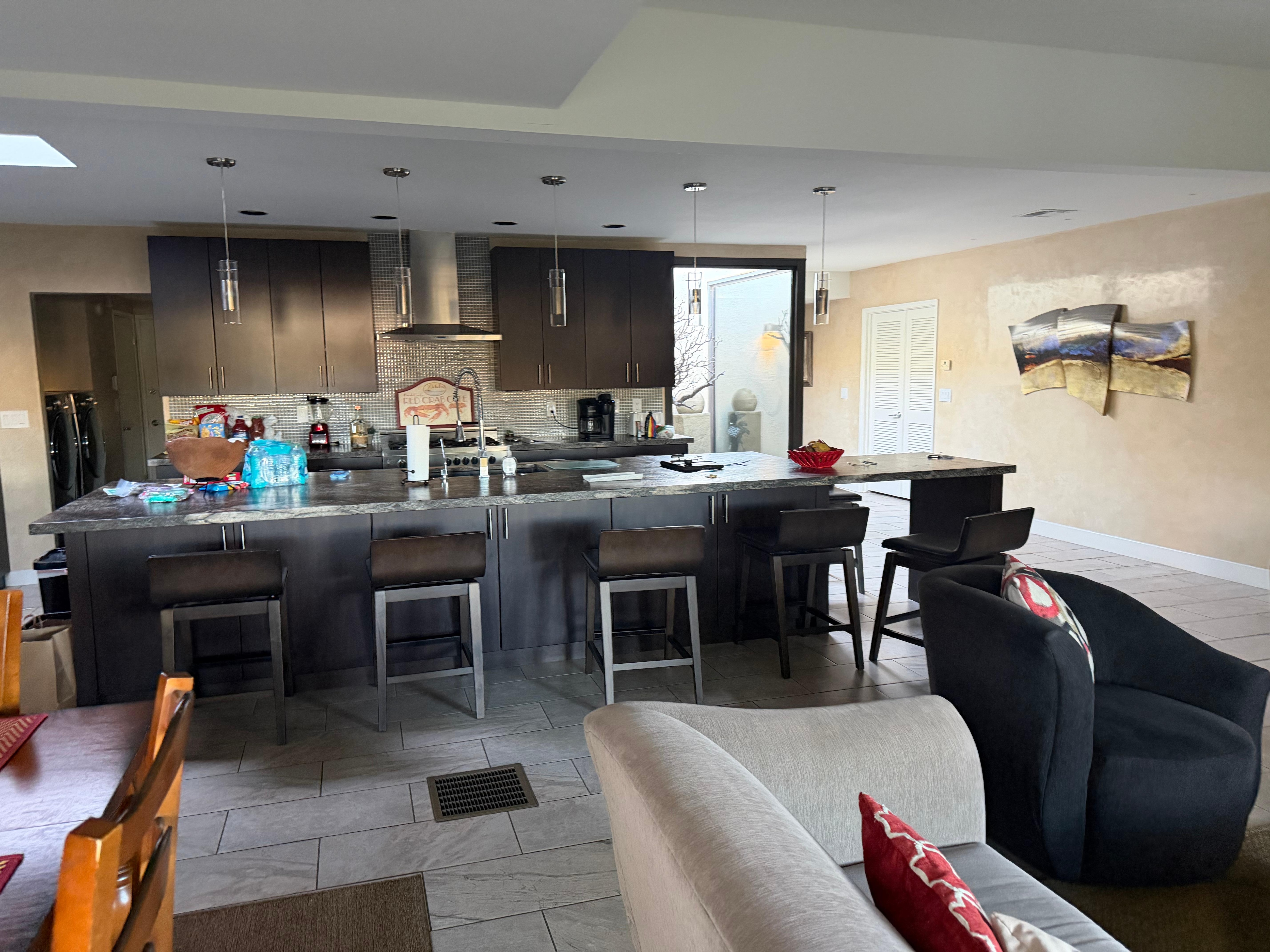 Spacious Great Room,  Dining area, Bar area and Huge serving and dining island.