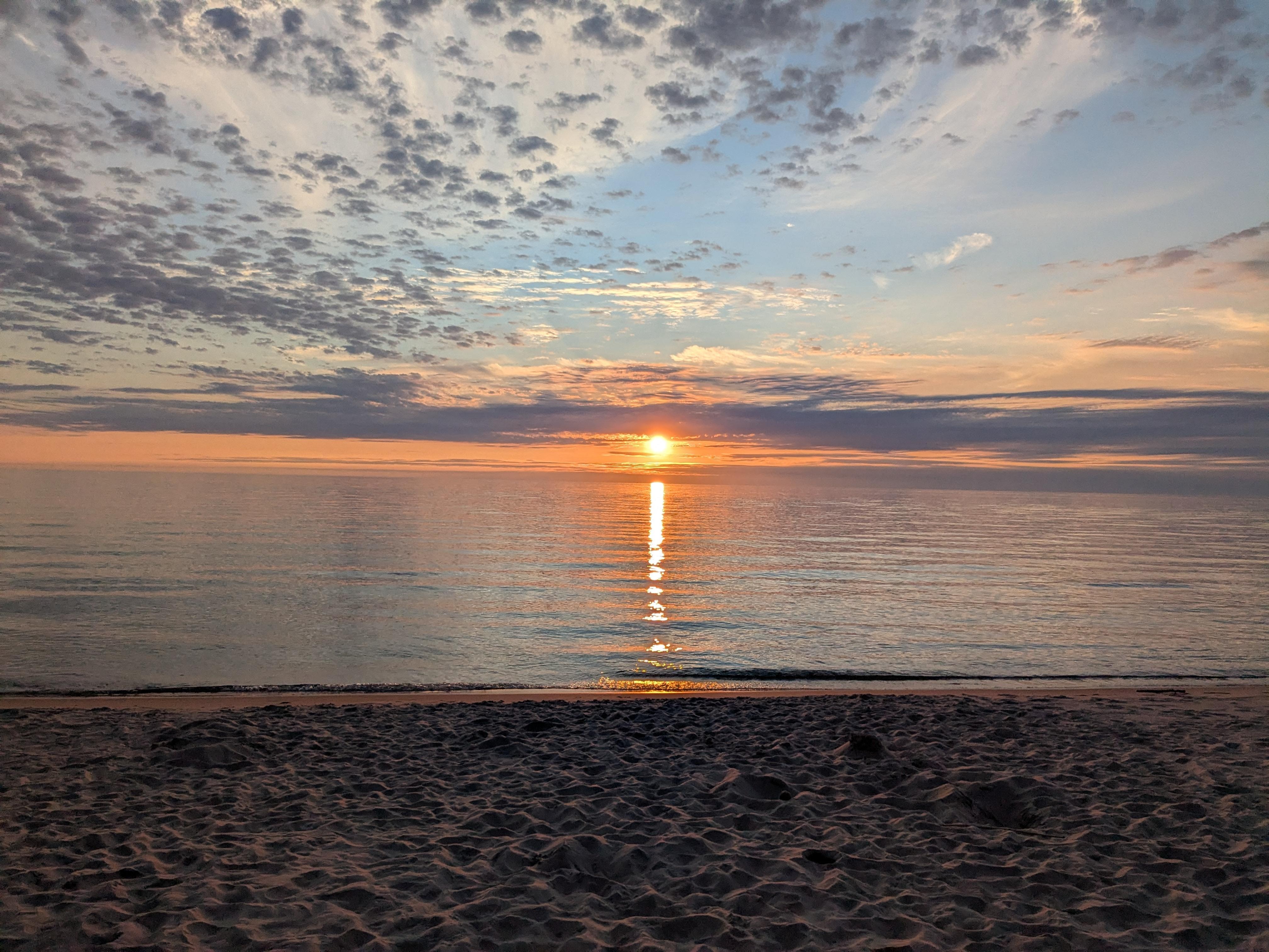 New seawall has been installed. Beach frontage varies depending on the water level of Lake Michigan.