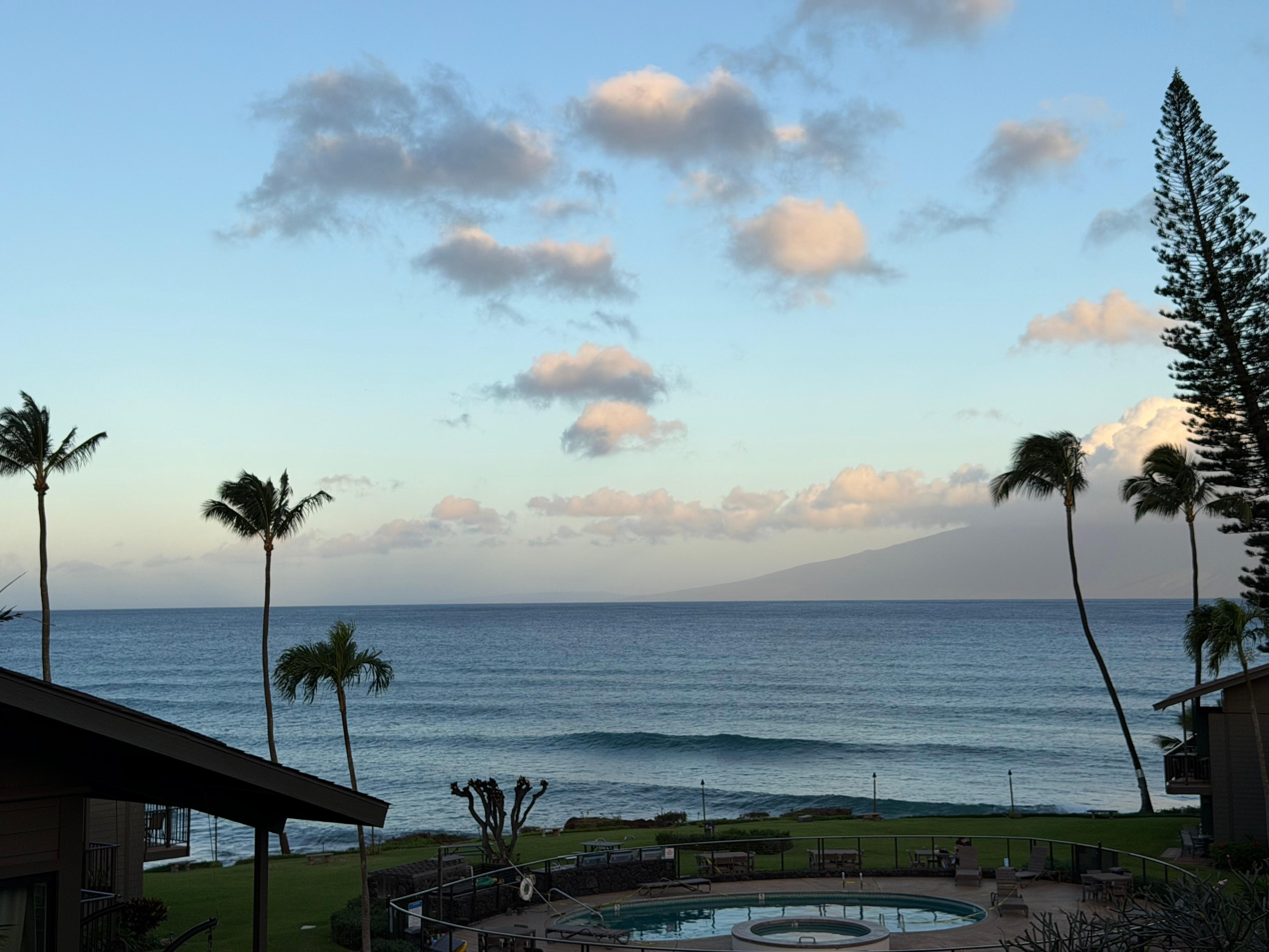 Fantastic ocean views of Molokai from the lanai, kitchen and living room. Trade winds directly from the ocean provide a nice breeze through the unit.