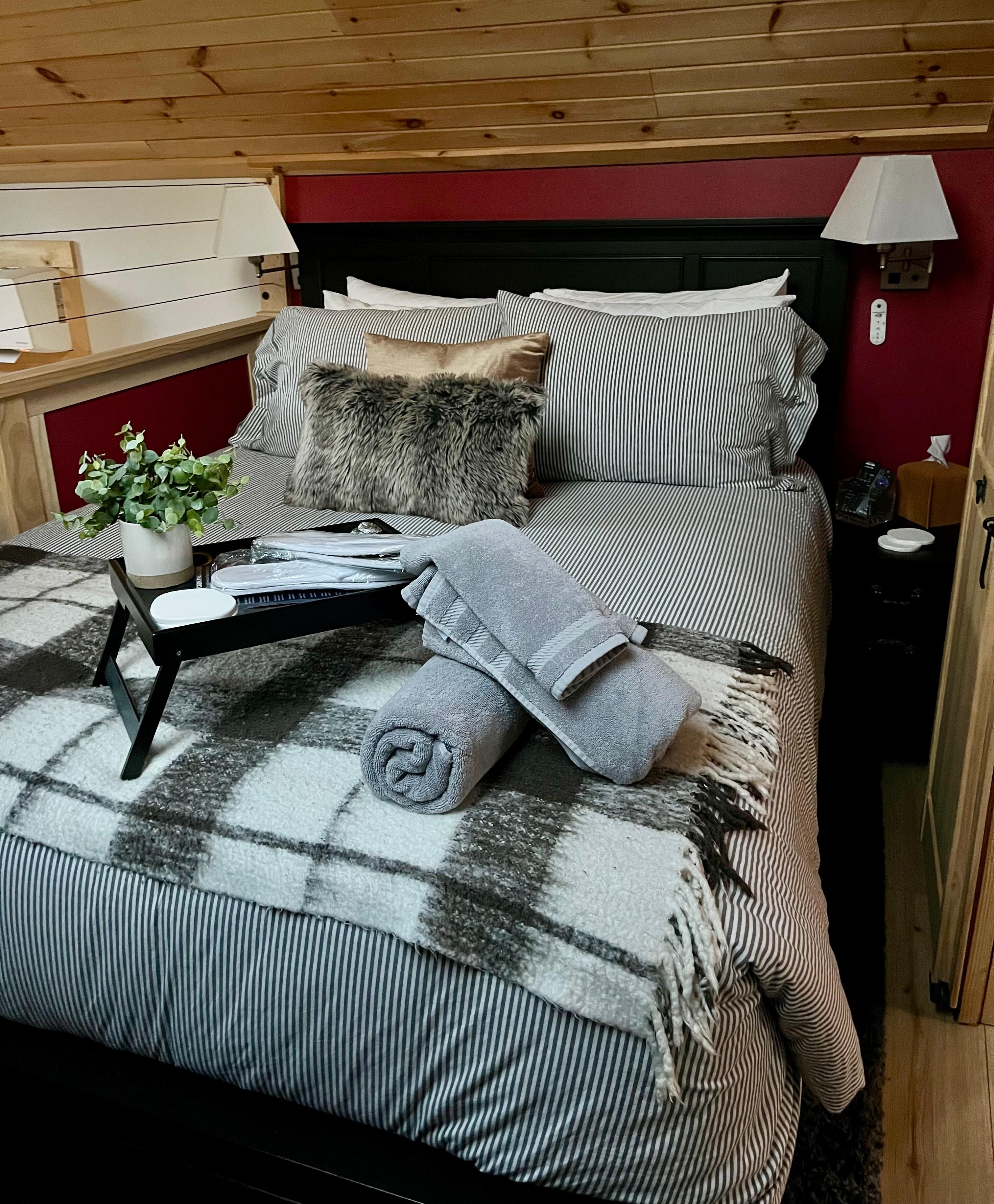 Upscale extras you won’t find in most cabins: EV charger, bidet, towel warmer by the hot tub, tiny arcade, record player, board games, smart speakers & lights, curated books, and more!