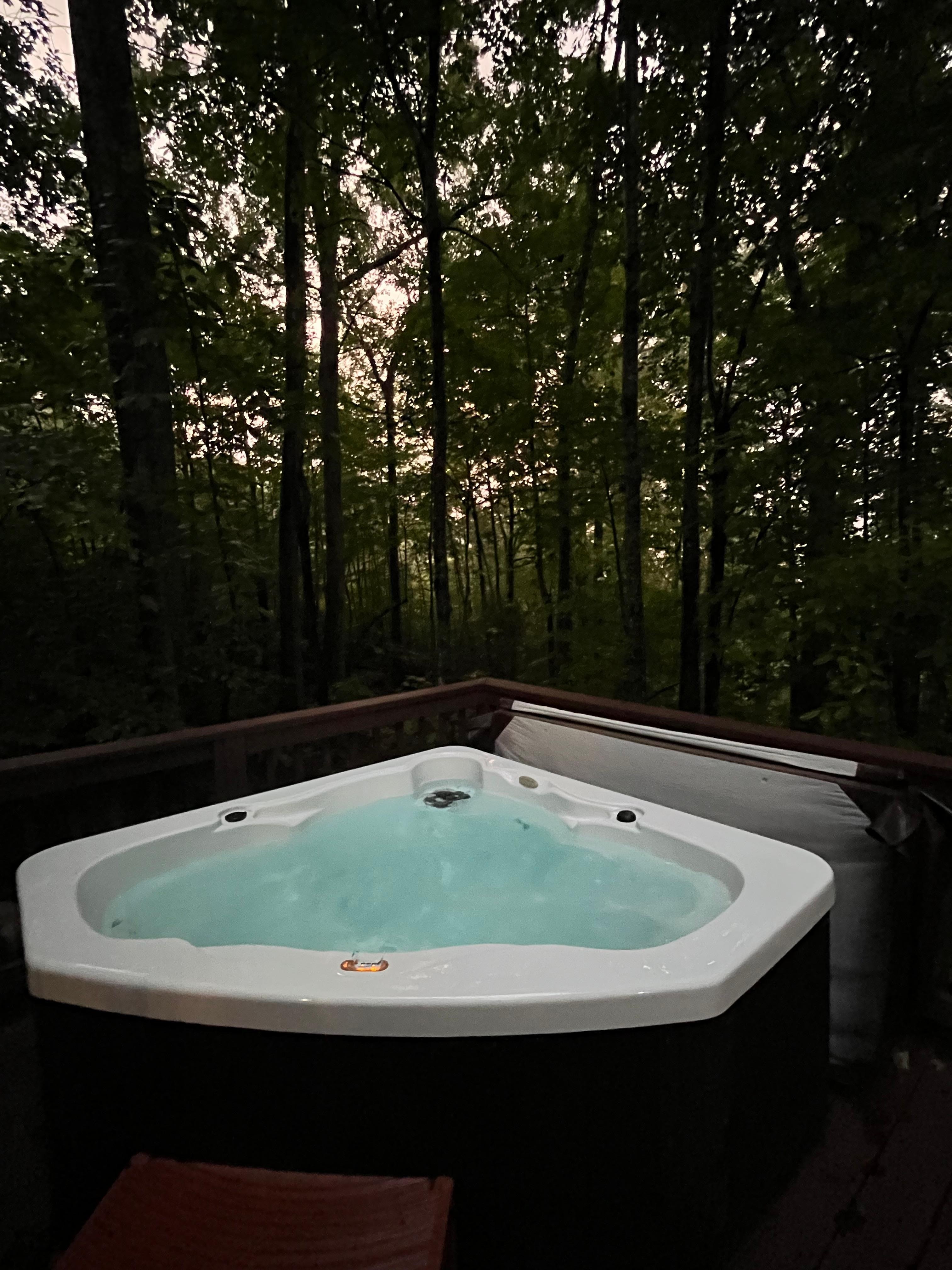 Miss Jo’s is one of three options at Sandy Cut Cabins. It’s a cozy one bedroom log cabin with a large private back deck. Miss Jo’s Cabin is just 2 miles from historic downtown Saluda and conveniently located beside part of the Sand Cut Pass railroad. Unfortunately, the train no longer travels the Saluda Grade but guests enjoy hiking along the old tracks for a day of exploring the quaint little town of Saluda. If you’re the adventurous type, Saluda offers Green River Adventures right downtown as well as The Gorge zip line. Just one mile past the cabin you’ll find Pearson Falls waterfall. It’s a moderate hike and enjoyable for children and “children at heart”. There are many day trip options in the area including the Biltmore Estate in Asheville, DuPont State Forest which has several waterfalls, and the Tryon International Equestrian Center. Please keep in mind that being surrounded by nature includes pesky insects and bugs and occasionally they get inside the cabin.