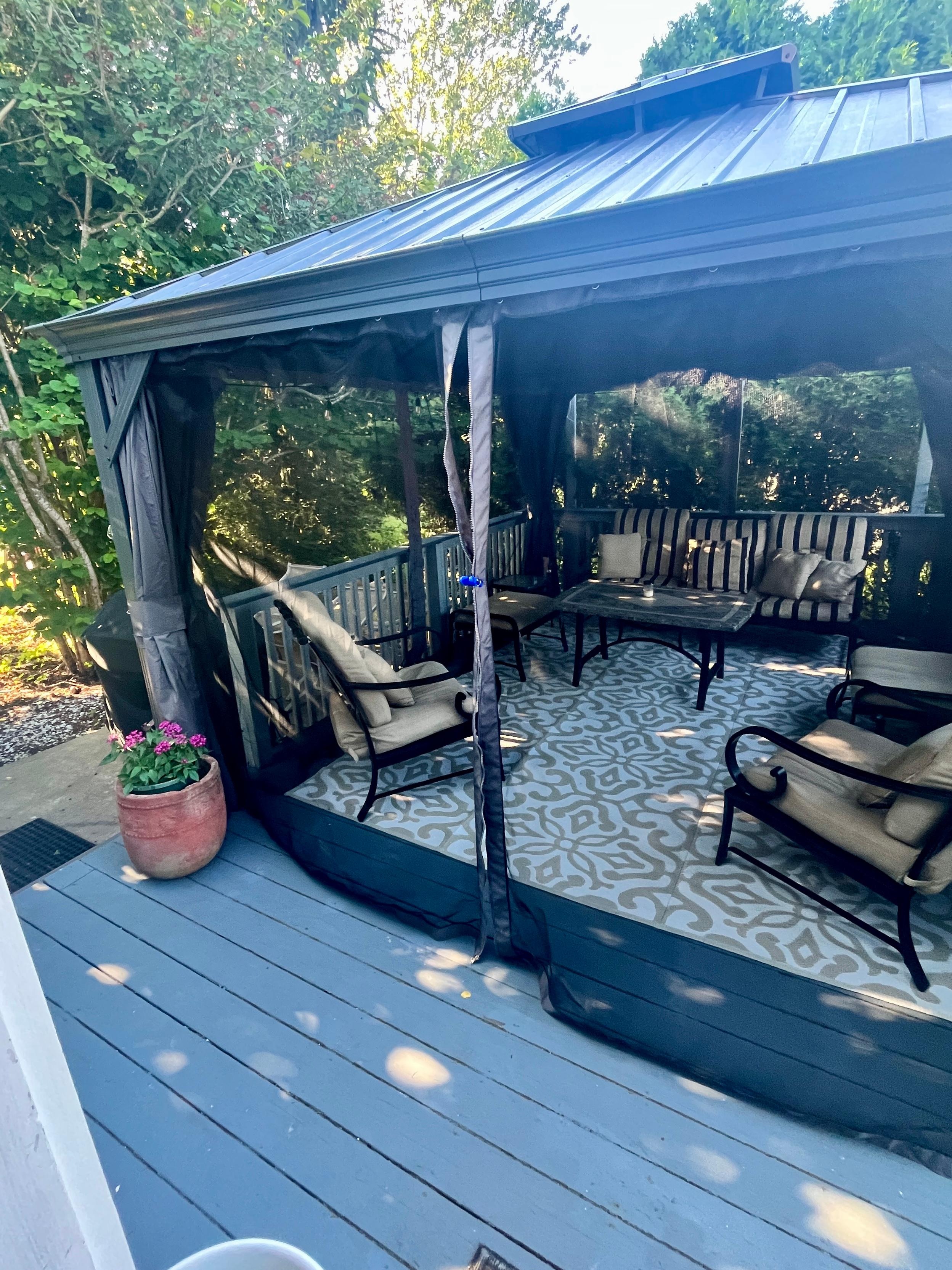 Amenities include: Central A/C, natural gas heat, enclosed hot/cold outdoor shower, fully appliances kitchen, front loading washer and dryer, bath tub with glass shower enclosure, Keurig coffee maker, hair dryer, iron and ironing board, large flat screen TV in living room, cable TV, DVD player and a large selection of DVD's, wireless internet, deck with lighted canopy and outdoor living room area, patio set.