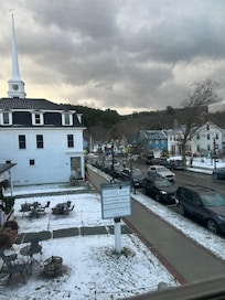 We are fortunate to be the new stewards of Mountain Chic Getaway! This lovely condo in the elegant 'Stafford' building has received many favorable reviews from past guests under the prior management, and we look forward providing you with the same level of service! Relax in this professionally designed two-bedroom, two-bathroom condo overlooking Main Street in the center of Stowe Village. Surrounded by fabulous restaurants, unique boutiques, grocery stores and steps away from Stowe’s Black Cap Coffee House. There is now also a Starbucks nearby. Walk out the door and down the stairs for a stroll, bike ride, snowshoe, or cross-country ski trek on the Stowe Recreation Path which begins just behind our building. Grab your gear and climb aboard the complimentary winter shuttle to Mt. Mansfield. The shuttle makes several trips a day during ski season and will pick up and deliver you to the doorstep of Stafford Place. This well-appointed second floor condo has an equipped kitchen, washer/dryer and plenty of closet space. King and queen beds will restore you after a fun-filled day on the mountain or a night on the town. Snuggle up by the fireplace with your favorite someone and watch the snow as it gently falls upon the village. Perfect for Ski and Spa weekends or Romantic Retreats. Plan your escape to the Stafford Place in the idyllic village of Stowe!