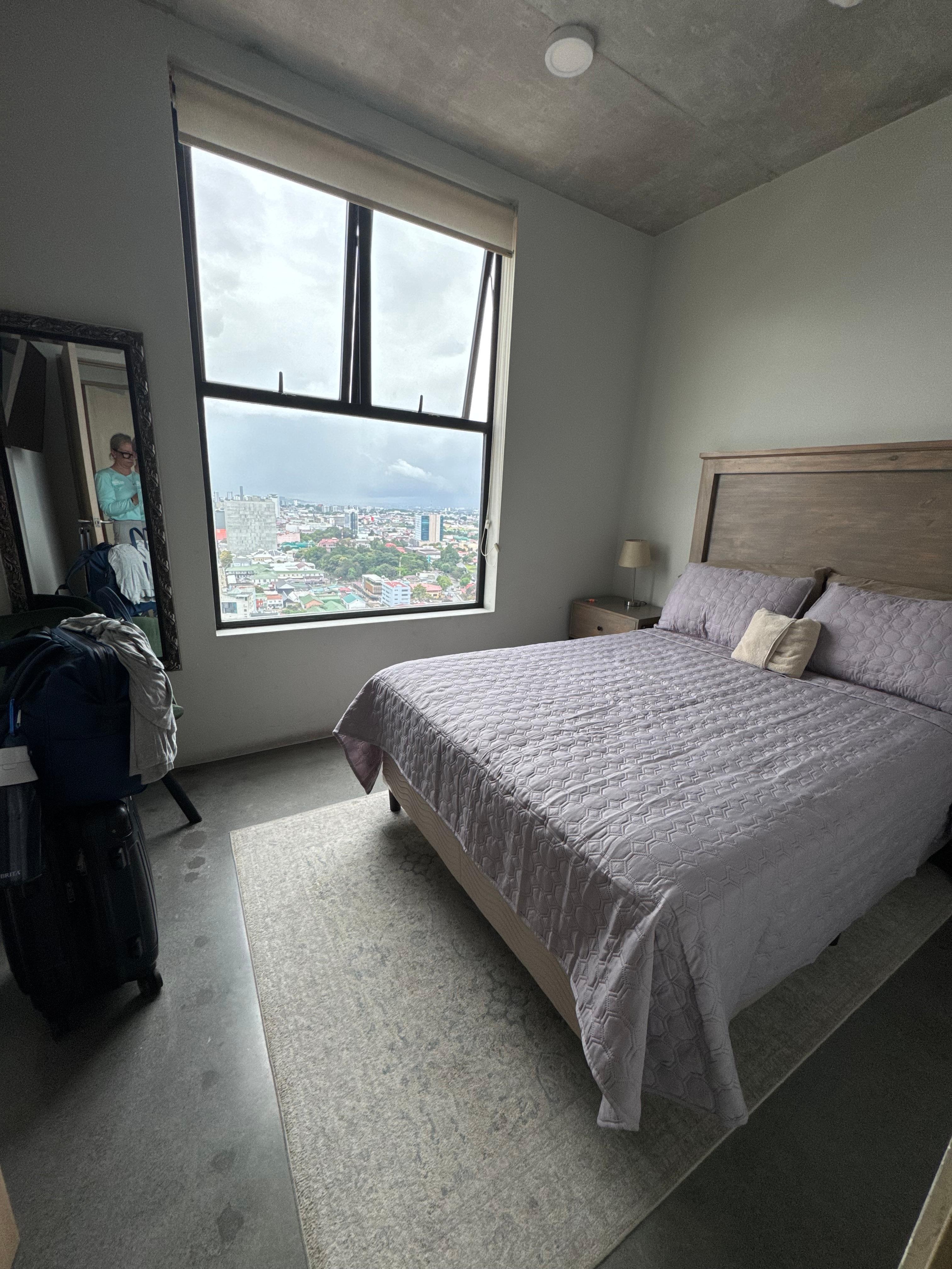 This San José apartment boasts 2 inviting bedrooms with 2 queen beds. The charming space includes heating and AC for your comfort. With 2 bathrooms featuring showers, you'll feel right at home during your stay. Full size in-unit washer and dryer and TVs in every room to connect to your preferred movie streaming service. WiFi speeds up to 200Mbps ideal for remote work. Located on a top floor providing beautiful views to the north and east. The apartment is walking distance to the Jade museum, the Gold museum, the National museum of Costa Rica, the National Theatre, the central market and much more. Want to experience Cartago or Heredia…just walk over to the Atlantic Railway station a few blocks away and take the commuter trains that rumble next to the building (sorry light sleepers). Stay over a long weekend to experience all of the lively local music and food venues nearby. We have 2 dedicated parking spaces to offer after your trips to the beach or volcanoes. Looking for organic produce and coffee from local farmers..stop by our farmers market on Saturday mornings.