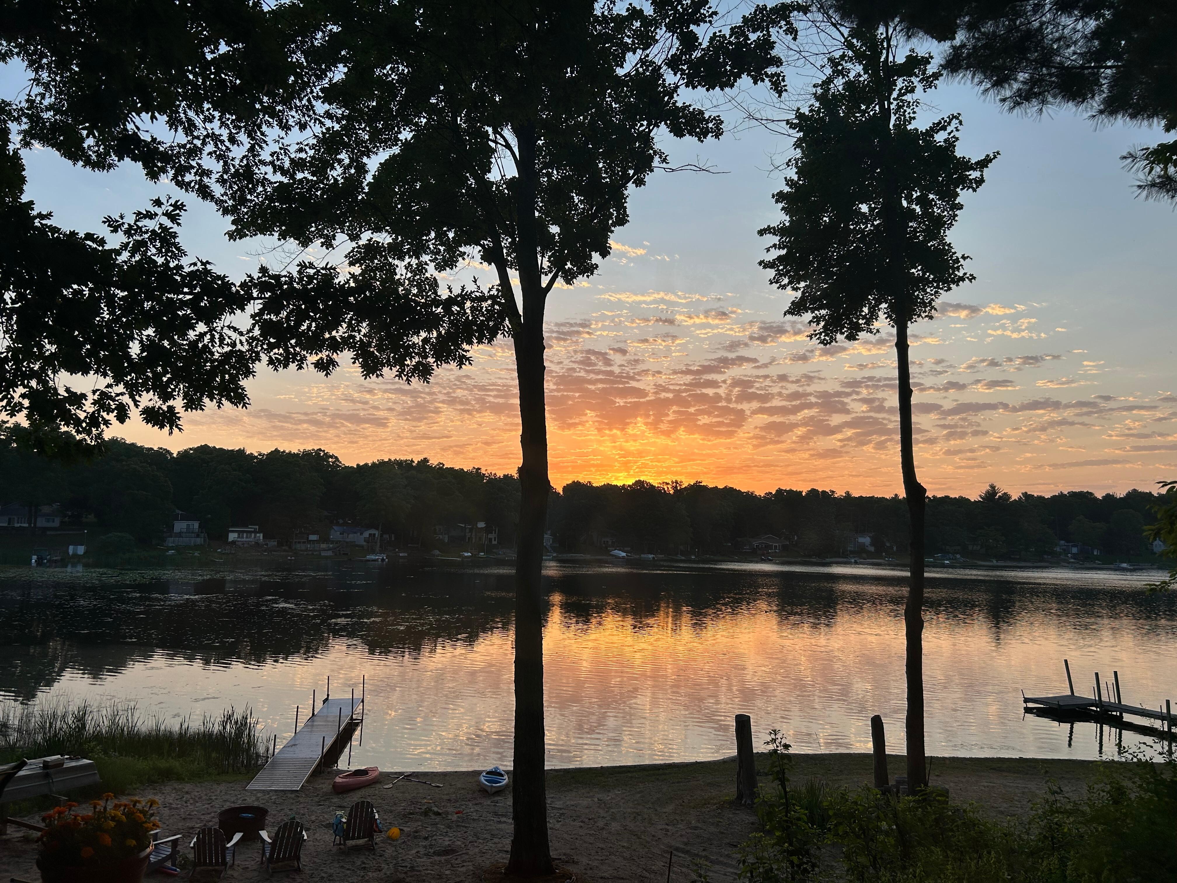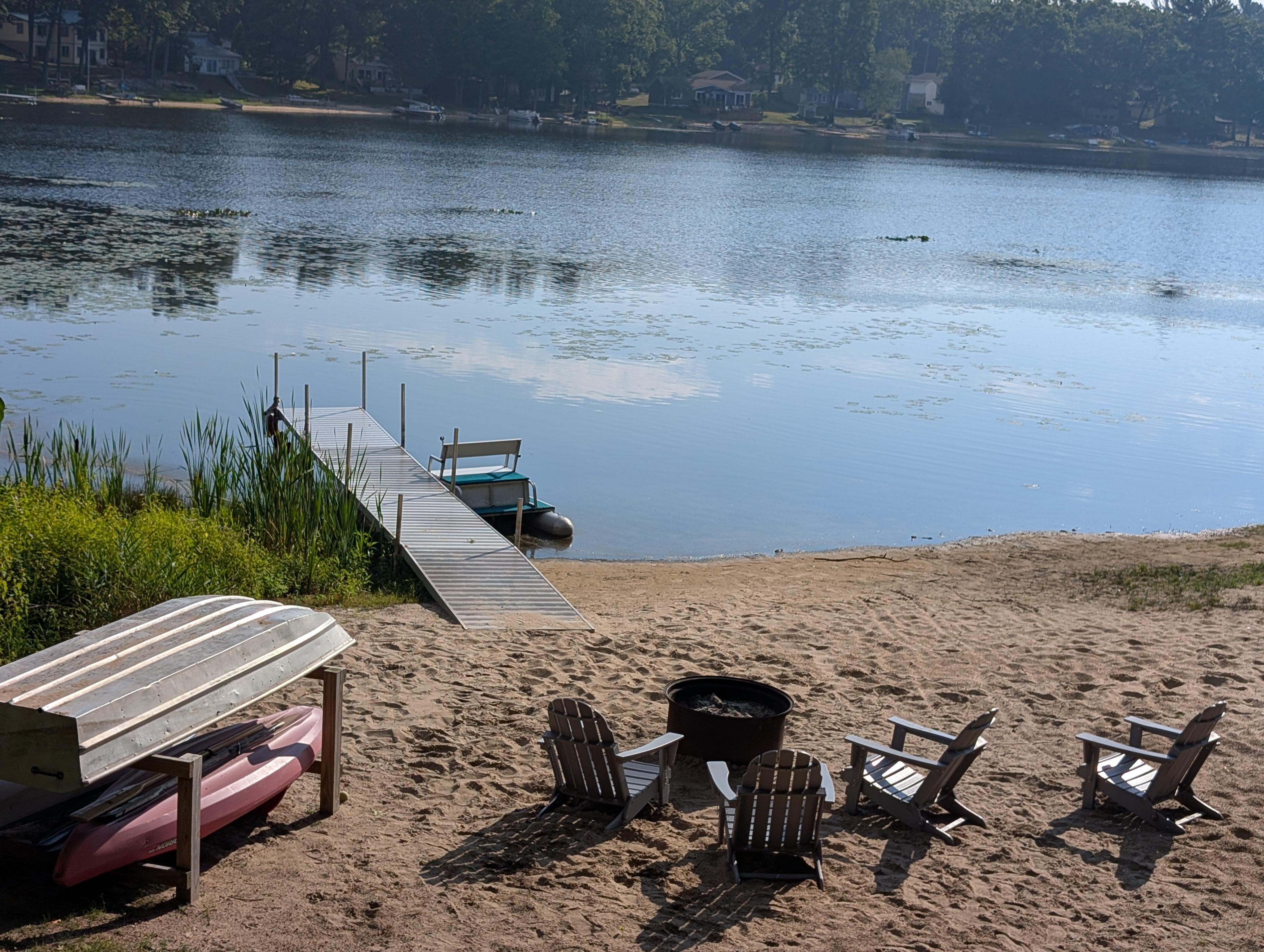 Enjoy your morning coffee on the lakefront deck, listen to the loons calling, or make s'mores in the fire pit while stargazing. This is the perfect spot to enjoy a peaceful family vacation. Our beachfront is perfect for small children with a gradual depth and warm water. Hart Lake (also known as Little Silver Lake) is an all sports lake located just outside of Twin Lake, Michigan. There are 2 kayaks that you can take exploring for turtles, fish and other wild life. There is ample room for throwing a football, a frisbee or playing a game of horseshoes (equipment provided and found in shed). Pack light because also included are linens, towels, beach towels, all your paper needs, Wi-Fi, stocked kitchen, DVD, movie collection, flat screen TV, basic cable, Netflix and numerous streaming channels.
