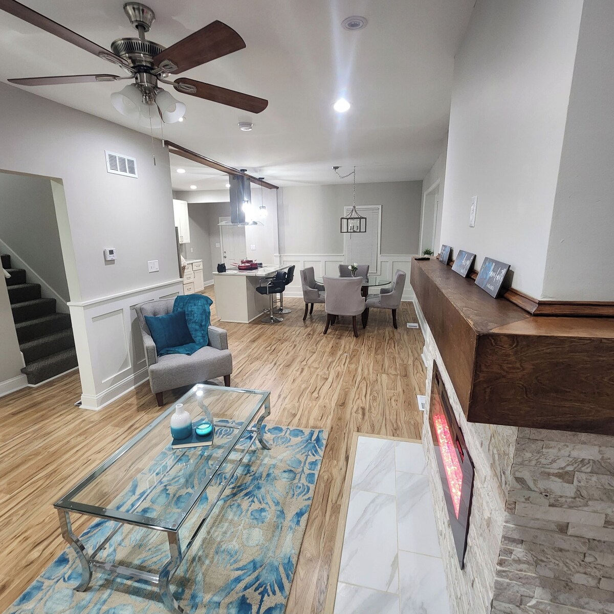 This is a newly renovated 3 bed 2.5 bath home. Master bedroom has queen size bed, 50" t.v with a private bath, 2nd bedroom is equipped with a Queen size bed and 50" TV. 3rd bedroom has a full-size bed with a 50" TV. The entire home has been renovated with new appliances and cabinets, This home comes fully stocked with (Linen, Towels and cookware) all you will need is your luggage.