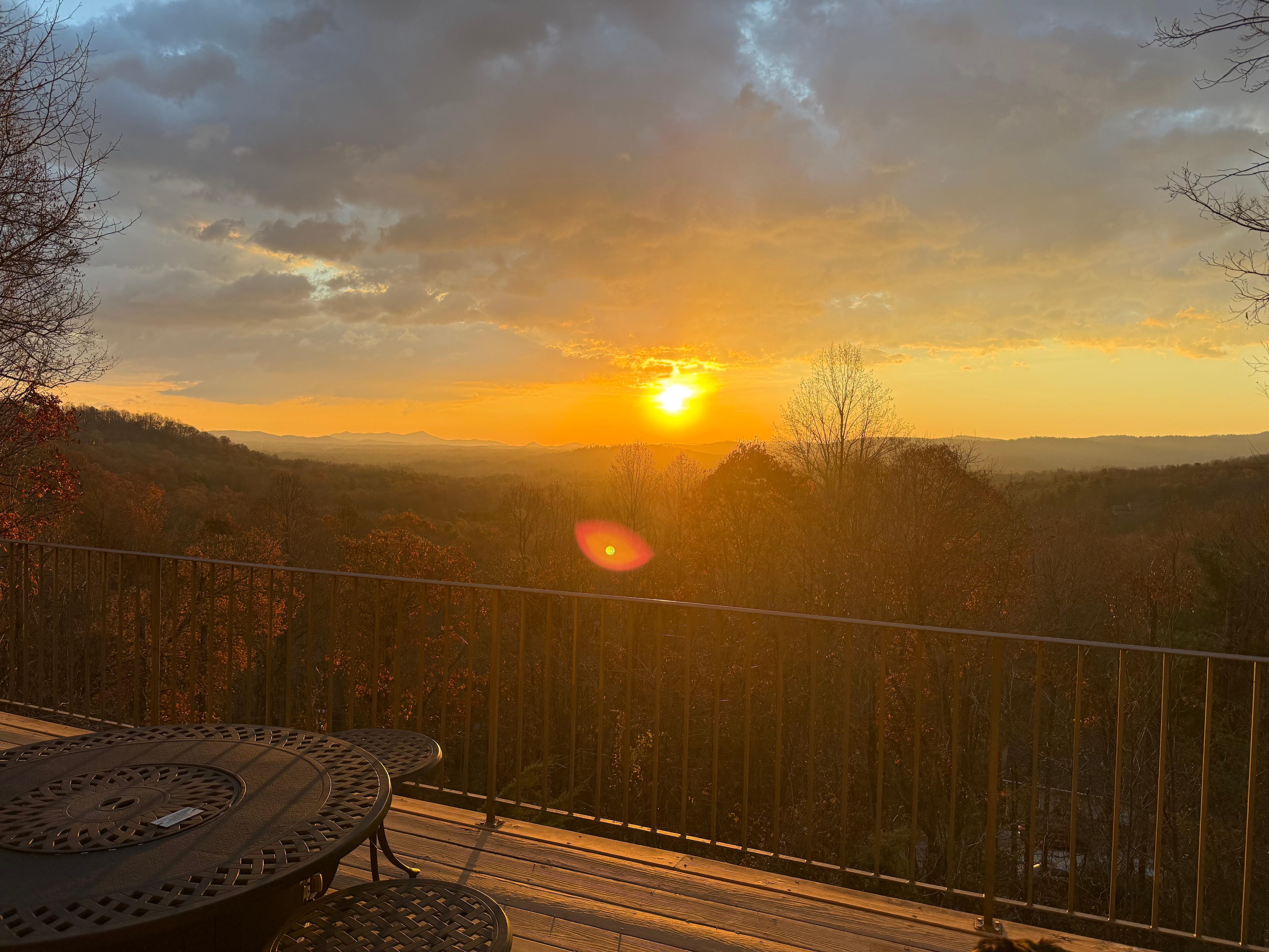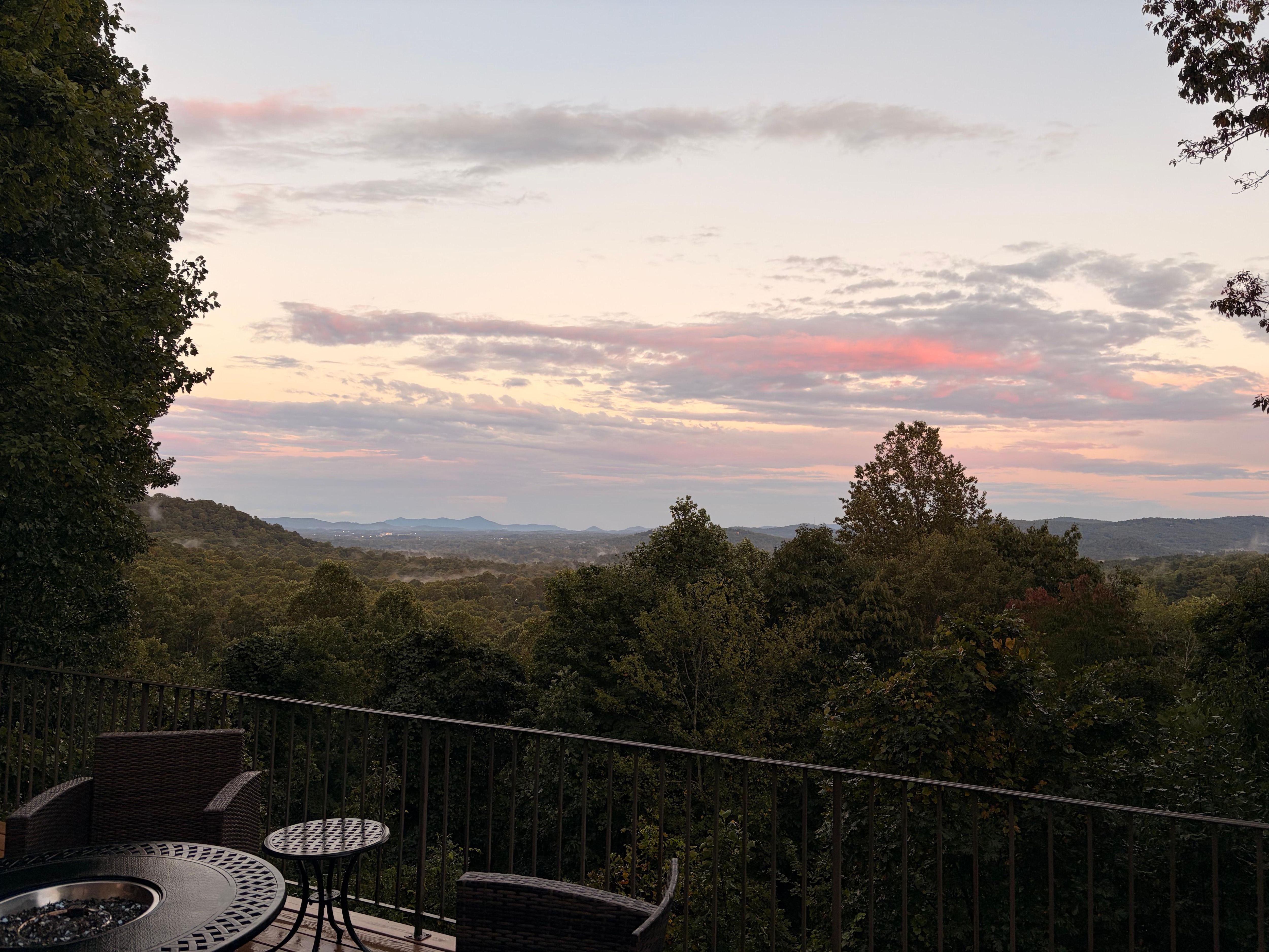 EAGLEROCK is a spectacular secluded home located just 10 minutes west of Historic Downtown Hendersonville situated on over 3 wooded AC's. This private home is perched on the side of the mountain with commanding long distant views over 2 mountain ranges with a 50 mile view to Tryon Peak in the distance.