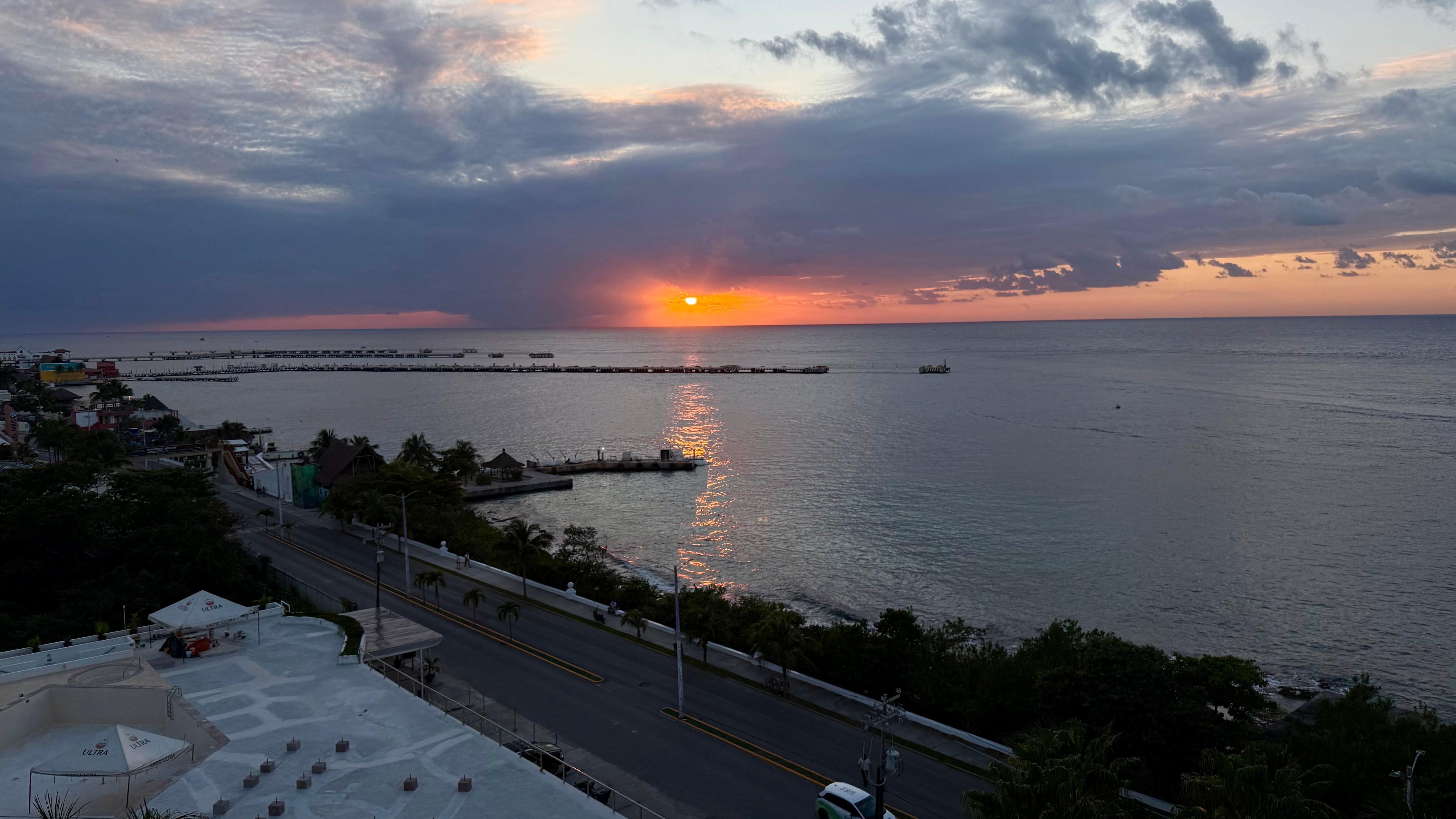 We invite you to spend your next vacation in the beautifully remodeled, spectacular 2050 sq ft home on the 8th floor of Cozumel's luxury condominium community, Palmar. The entire west-facing wall of the home features giant floor to ceiling picture windows and sliding glass doors revealing breathtaking views of blue sky spilling into blue Caribbean waters. Open the sliders and step out onto the 400 square foot balcony that also runs the length of the condo and has furniture and a 5 burner gas grill. This is the place to sit back and soak up a Cozumel sunset!