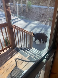 Please be respectful of bears—they are just waiting for you to set your trash on the porch so they can tear it up (ask us how we know….)!! Please use the available bear trash cans and don’t ever leave any food outside unattended.