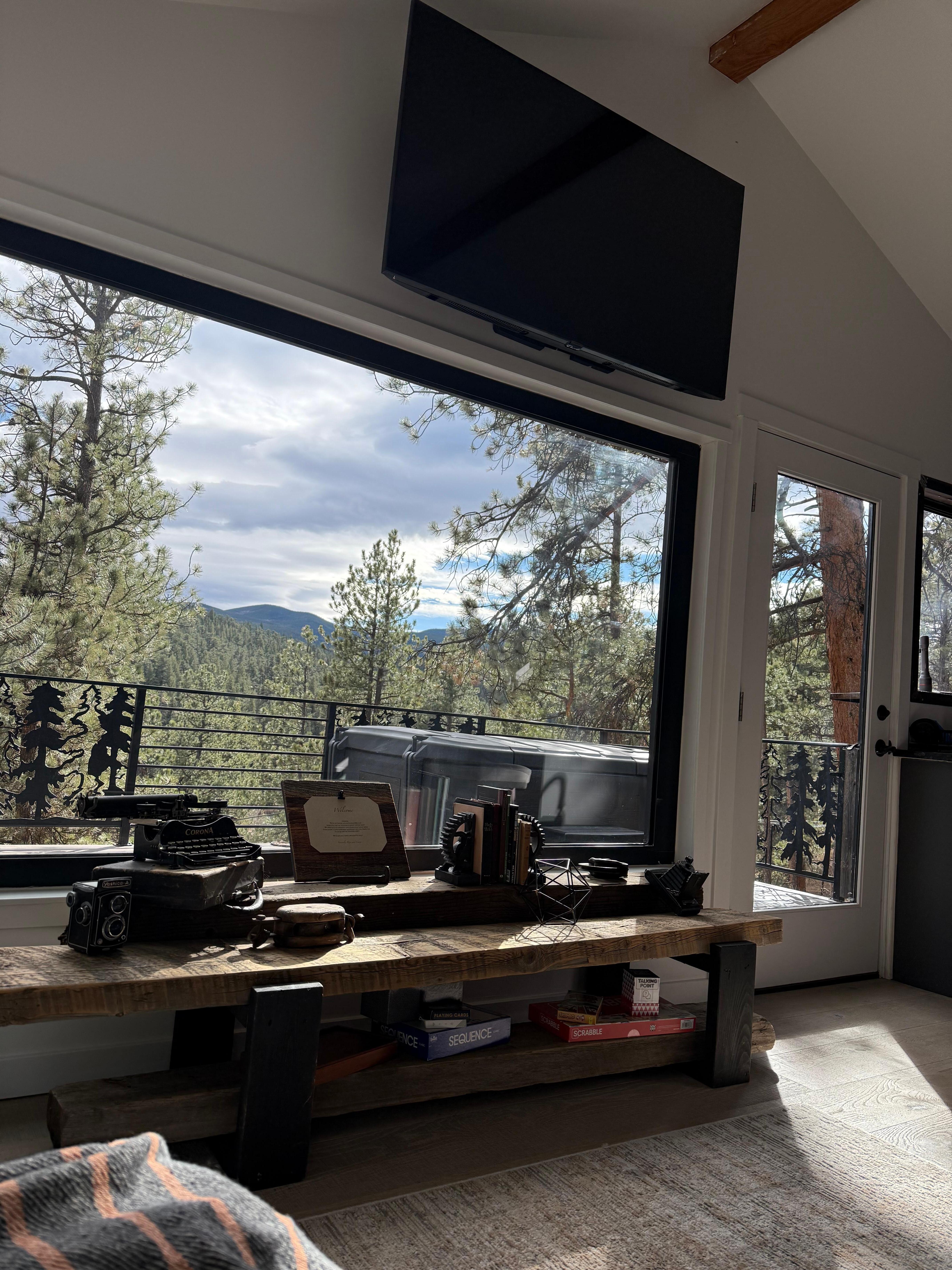 Take it easy at this unique and tranquil getaway. Come enjoy time away from the fast and busy life of the city and escape to the mountain air. Hidden in old pine trees and spectacular views of Mount Evans, this newly renovated cabin can rejuvenate the soul and give you the peace and quiet you deserve. This cabin is a 15 minute drive to downtown Evergreen, a quick drive to popular hiking trails, and within walking distance to Tall Grass Spa.