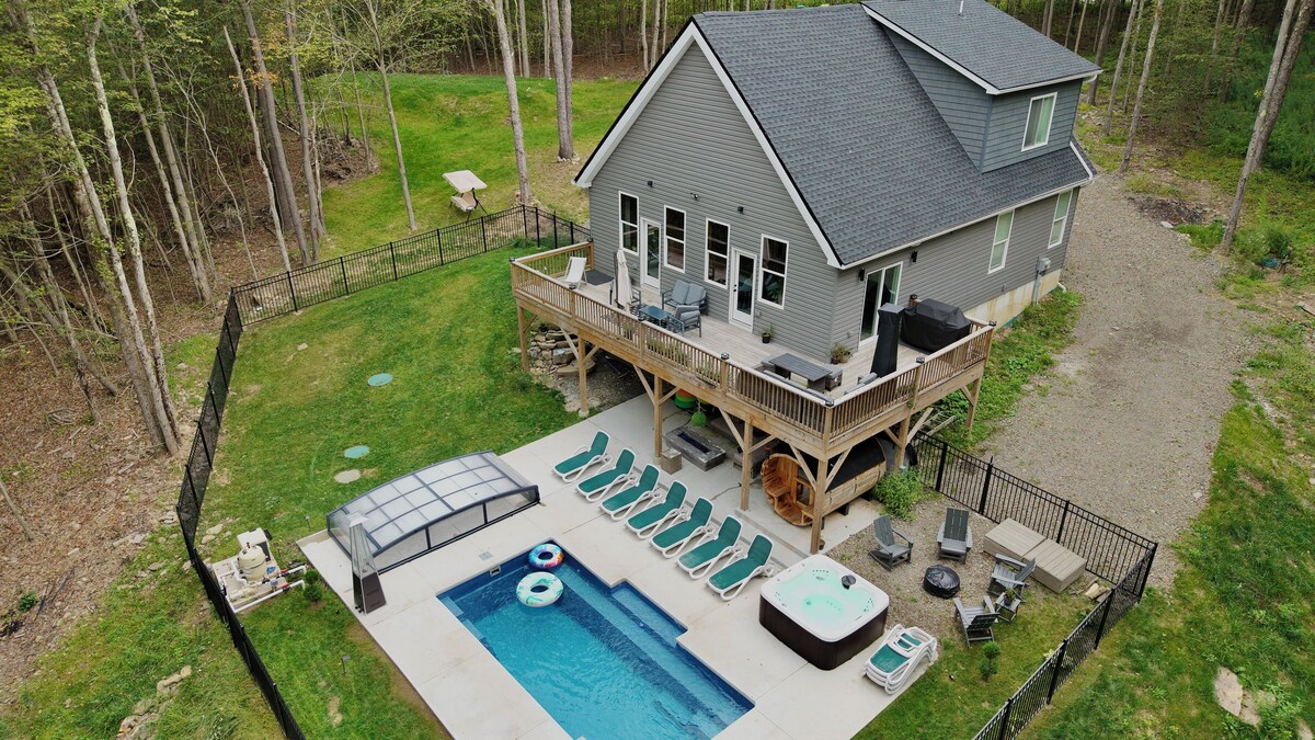 Secluded chalet tucked away in the woods of Moscow PA but central to all skiing and water park attractions. Three levels of the home provide ample space for big families to spread out with 4 bedrooms, 3 full bathrooms and 2 half bathrooms. Built in 2025 this is a brand new home ready to welcome your family for your mountain adventure. The pool is heated year-round with a full spa, sauna, and jacuzzi.