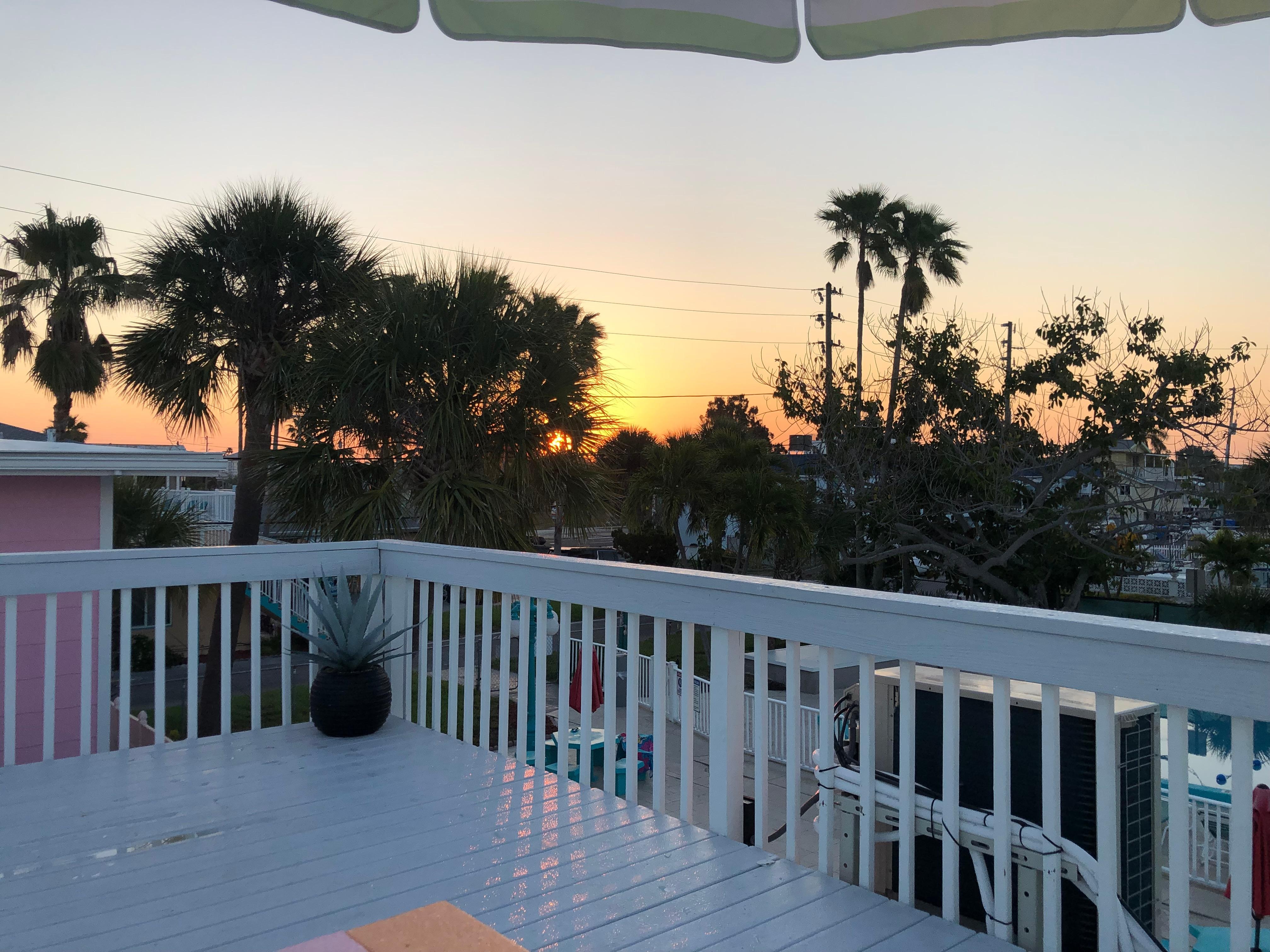 This property features a roughly 40x15 second story deck with a picnic table and chairs for you to enjoy breakfast/lunch/or dinner and for you to soak up gorgeous sunsets and views of the Gulf. This is a private area for you and your guests. Since it does sit over top of the other bungalow that is on the property, we do ask that you are respectful to the guests renting the bungalow and not play loud music on it or have kids running on it as the sound will travel through the roof of the bungalow the decks sits over.