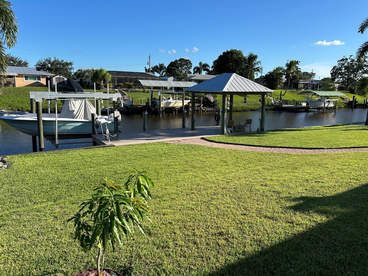 Enjoy this renovated 3 bedroom 2 bathroom home with 110 foot of waterfront, and with ocean access. Outside you'll find composite decking and water dock space for your boat. Electric & water throughout the dock with a 30 amp ship to shore power. Fenced yard and a screened patio with outside dining table, TV, BBQ grill, and hot tub. Inside the home features an open concept with Italian porcelain tile in the main areas & luxurious vinyl floors in the bedrooms, new baseboards & crown molding throughout. The kitchen features a beautiful island w/ quartz countertops, glass backsplash, all new GE S/S appliances & wine fridge. The property also offers waterfront views from kitchen and screened patio. The master bath offers quartz counters, stand alone shower with rainfall shower head. Property has parking for boat trailer and RV with a 50 amp RV hookup. Free public boat ramp located about one mile away from property.