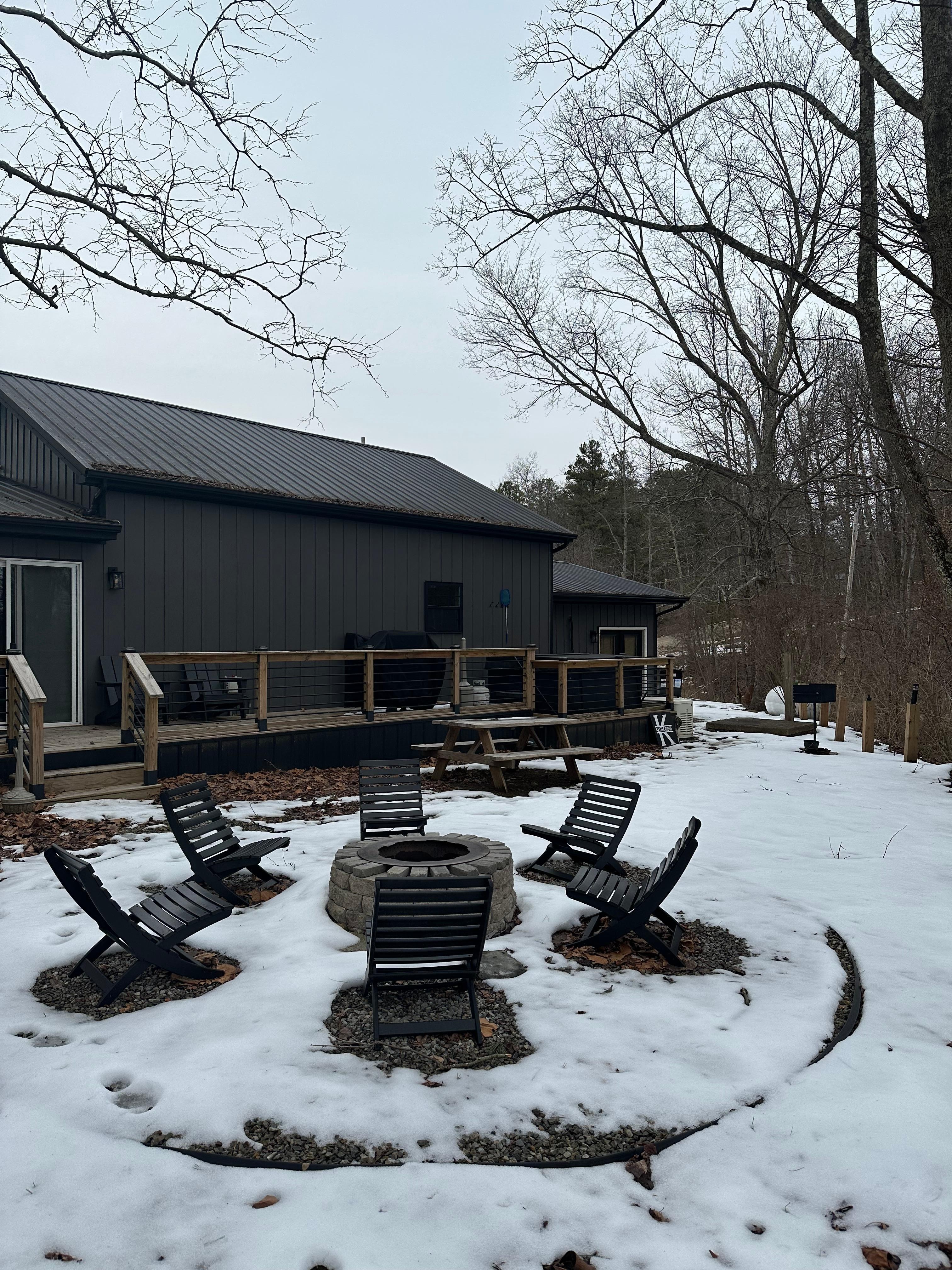 Step outside and enjoy the peaceful natural surroundings. The private outdoor area includes a grill for outdoor cooking, a fire pit for evening gatherings, and comfortable space to relax. The wooded setting offers privacy and a sense of seclusion while still being close to local attractions.