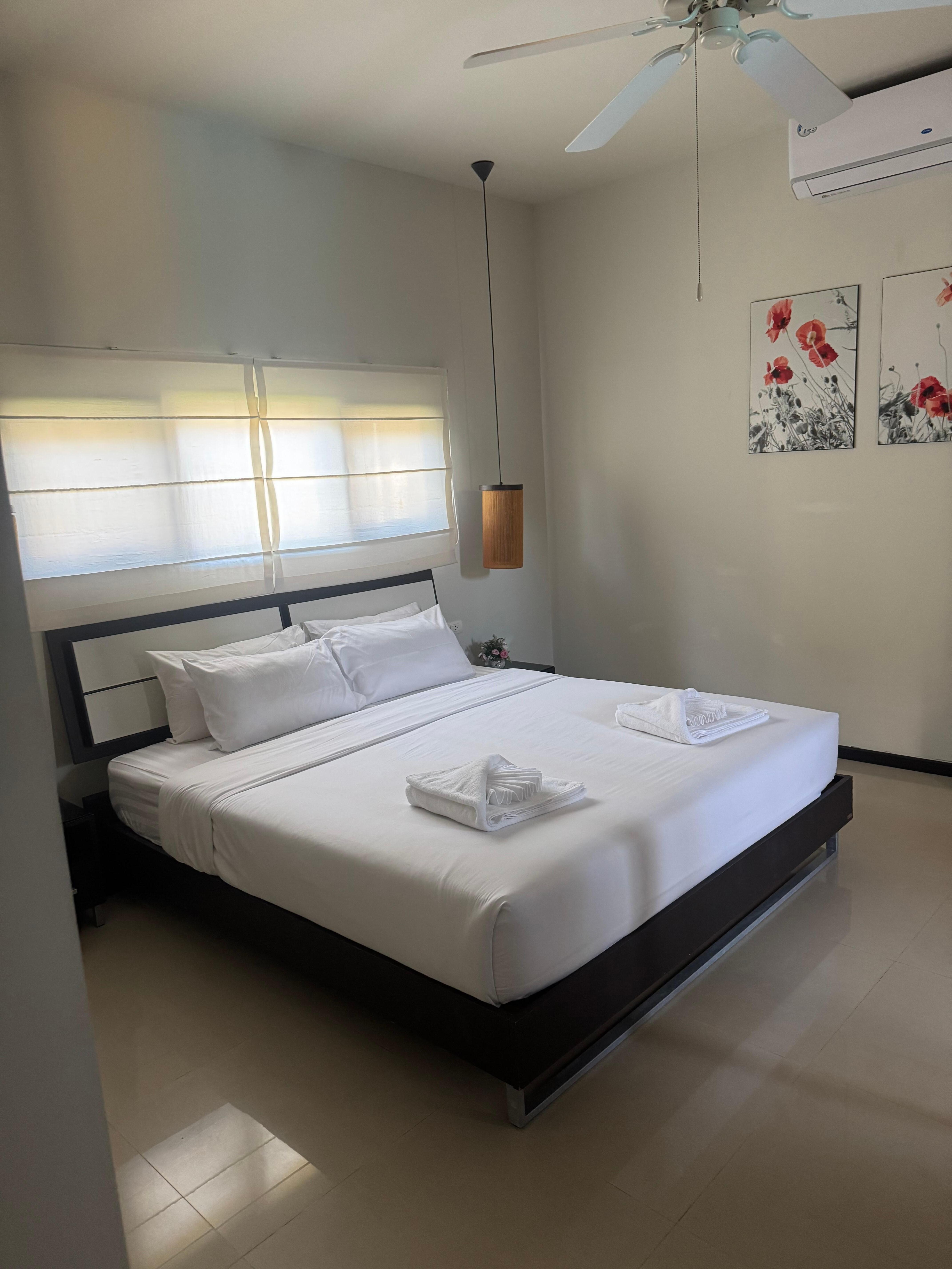 Villa Niche is a fully furnished 3 bedrooms villa located in the main commercial area of saiyuan in Rawai, just a few minutes drive from the stunning Nai Harn beach. The villa features a private pool, three en-suite bathrooms, spacious common space, fully equipped kitchen and super fast wifi. For control excess of electricity usage, Electricity is not included extra 7 Baht/kilowatt/ unit It is a great location for family holidays or holidays with friends.