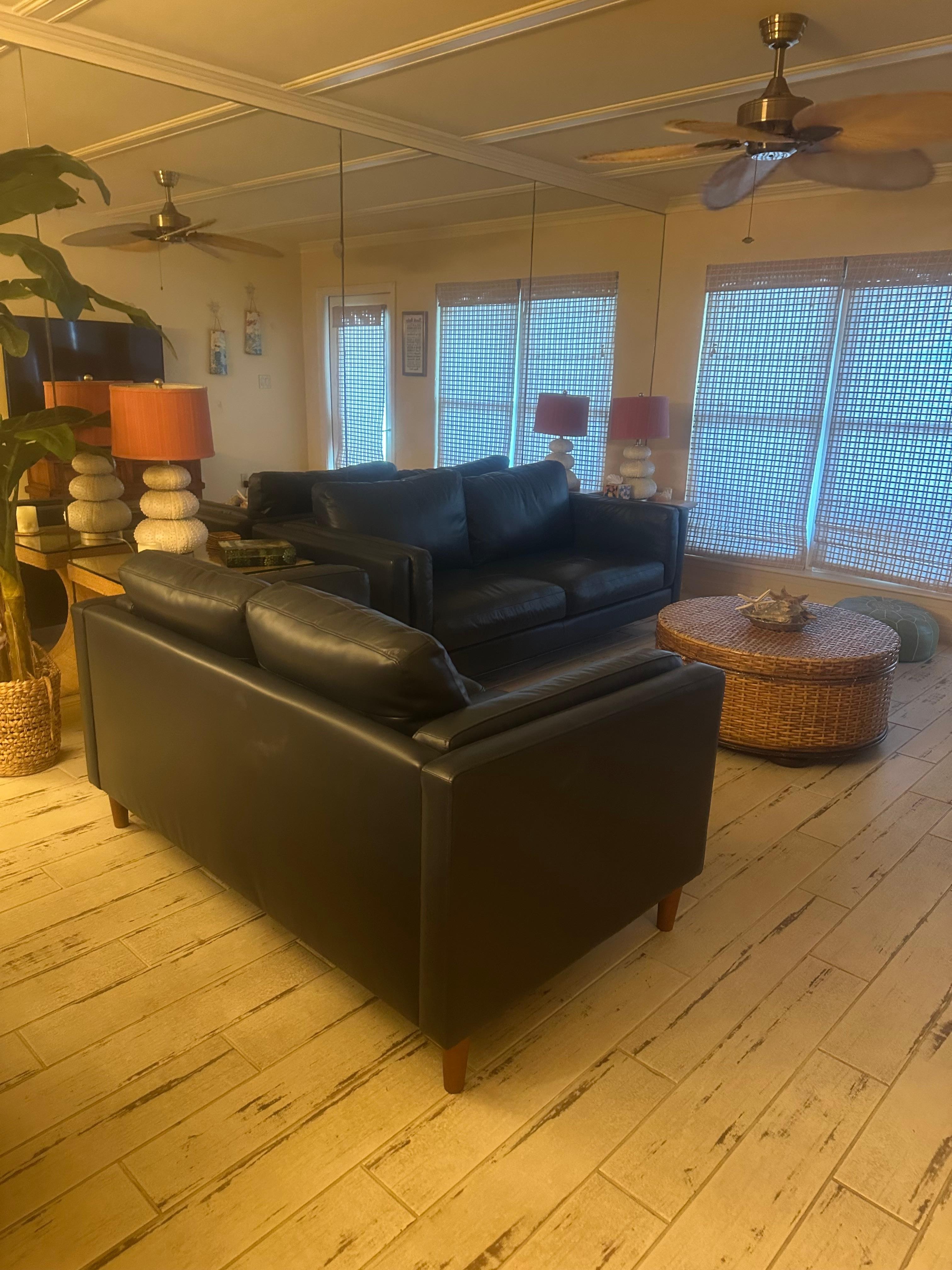 The master bedroom has a king-size bed and the master bath has a walk-in shower with seat. The second bedroom has two full-beds with it's own shower/bath.