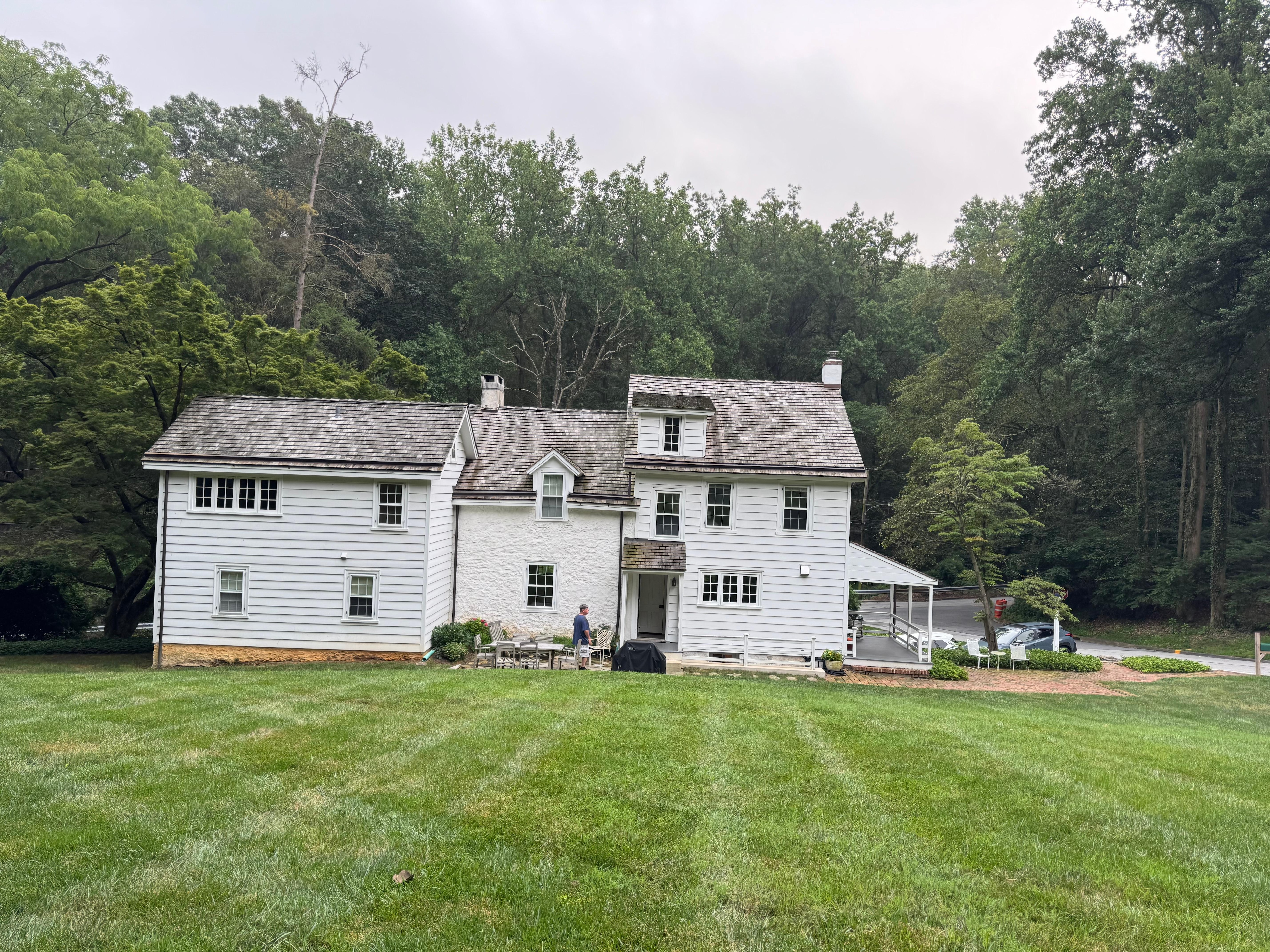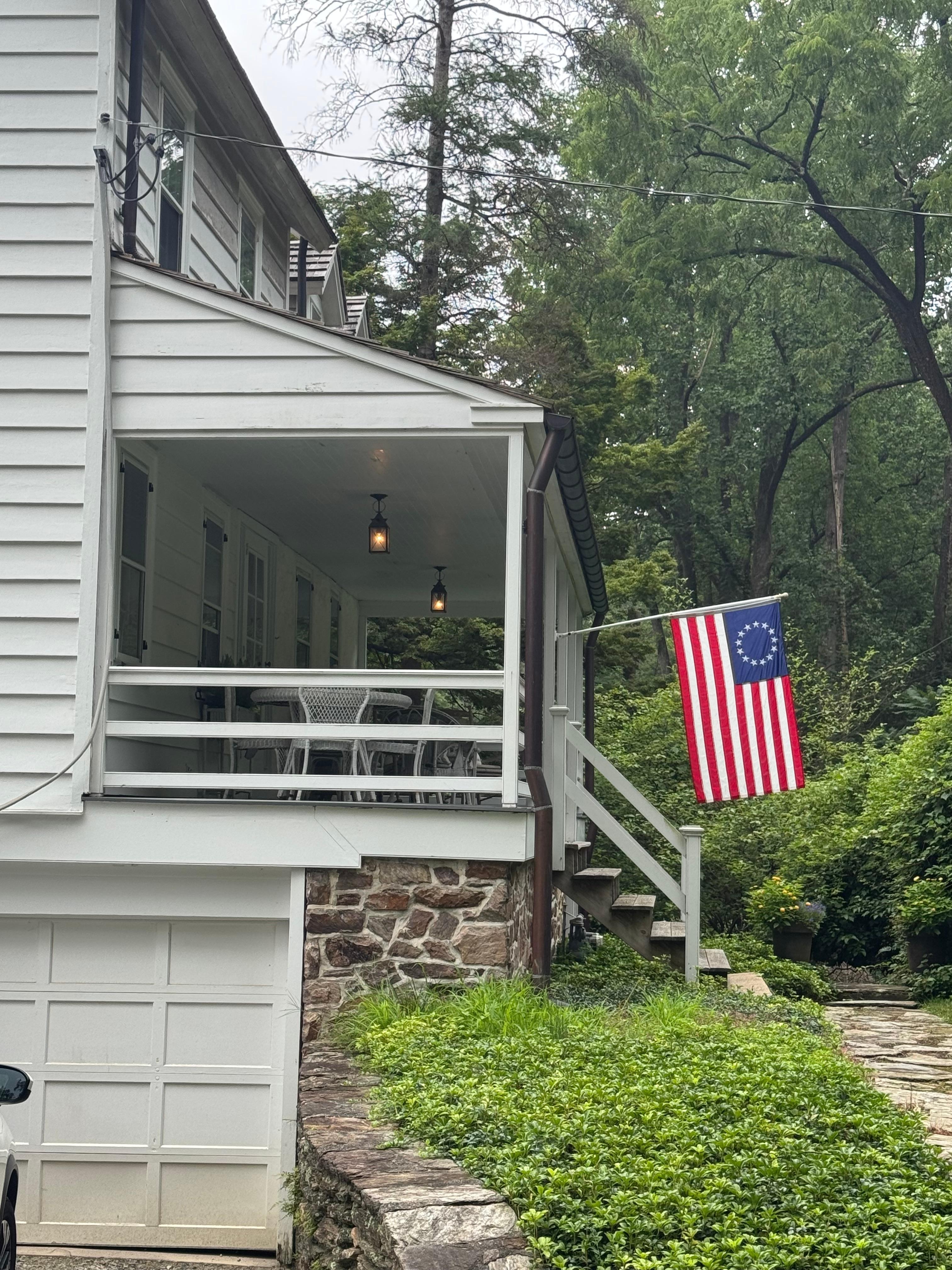 Recently updated, the home sits on two acres of land and is part of a neighborhood known as Colonial Village. The home seamlessly blends the comfort and style of modern amenities with the simplicity and craftsmanship of the original 1700s farmhouse. Over the years, the home has been expanded and, more recently, fully renovated. Warm, welcoming, and well-suited for today’s lifestyle, the 5-bedroom 4 bath home includes two primary bedrooms with baths (one on the first floor), a family room in what was the original 1700's kitchen with a large walk-in wood burning fireplace on the lower level. The main floor has an inviting fireside living room, a dining room, and eat-in kitchen with contemporary appliances. The second floor has the second primary bedroom with an en-suite, a large walk-in closet and office. Two additional bedrooms and a full bath. The third floor has the 5th bedroom, furnished with 2 full beds and an en-suite bath with the original claw foot tub! A covered front-porch and rear stone patio invite guests to relax and enjoy the natural beauty surrounding the home. Like many historic properties built before the advent the automobile, our home does sit close to the road. Our front porch looks across at 12 acres of woods and a stream!
