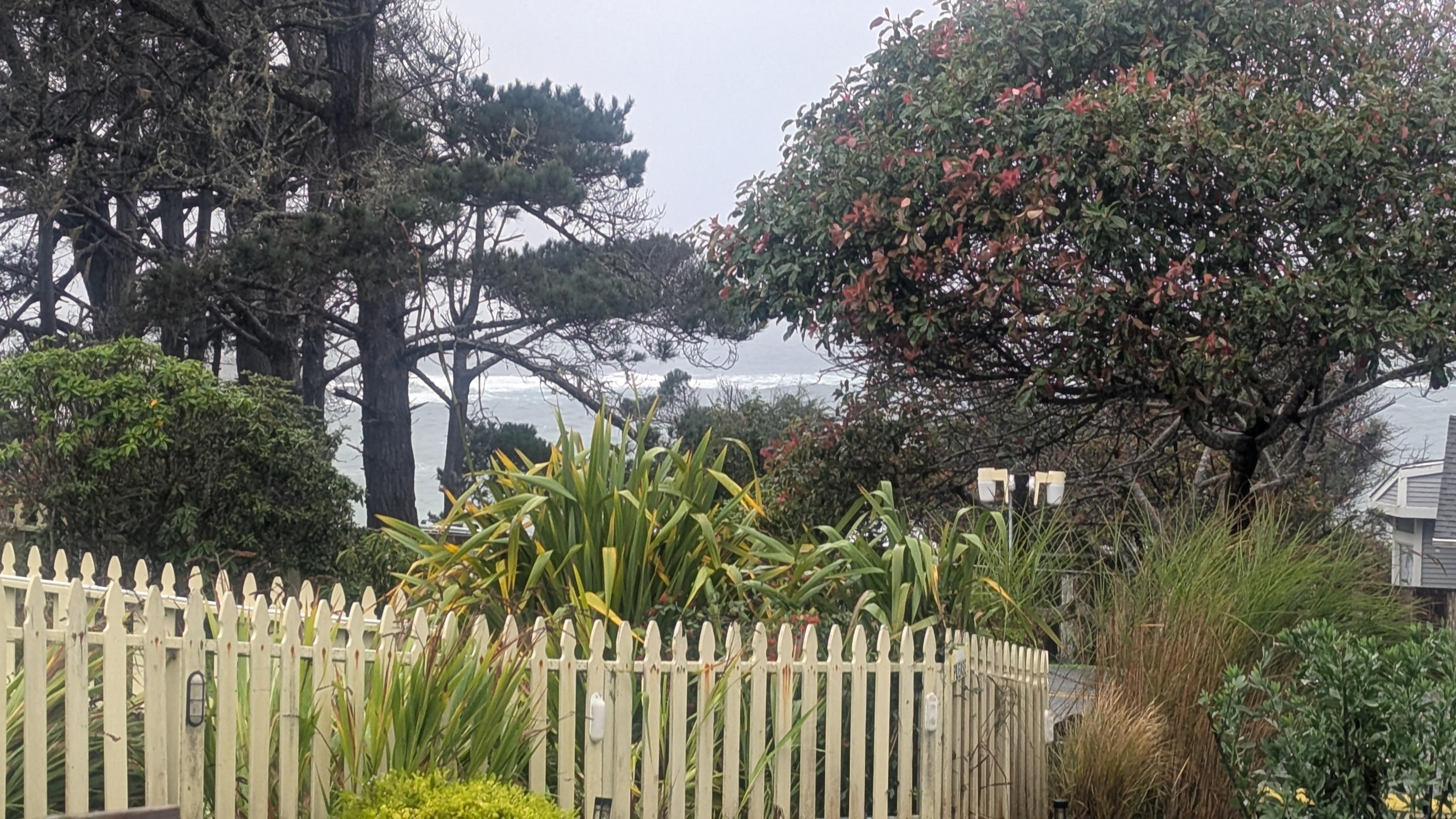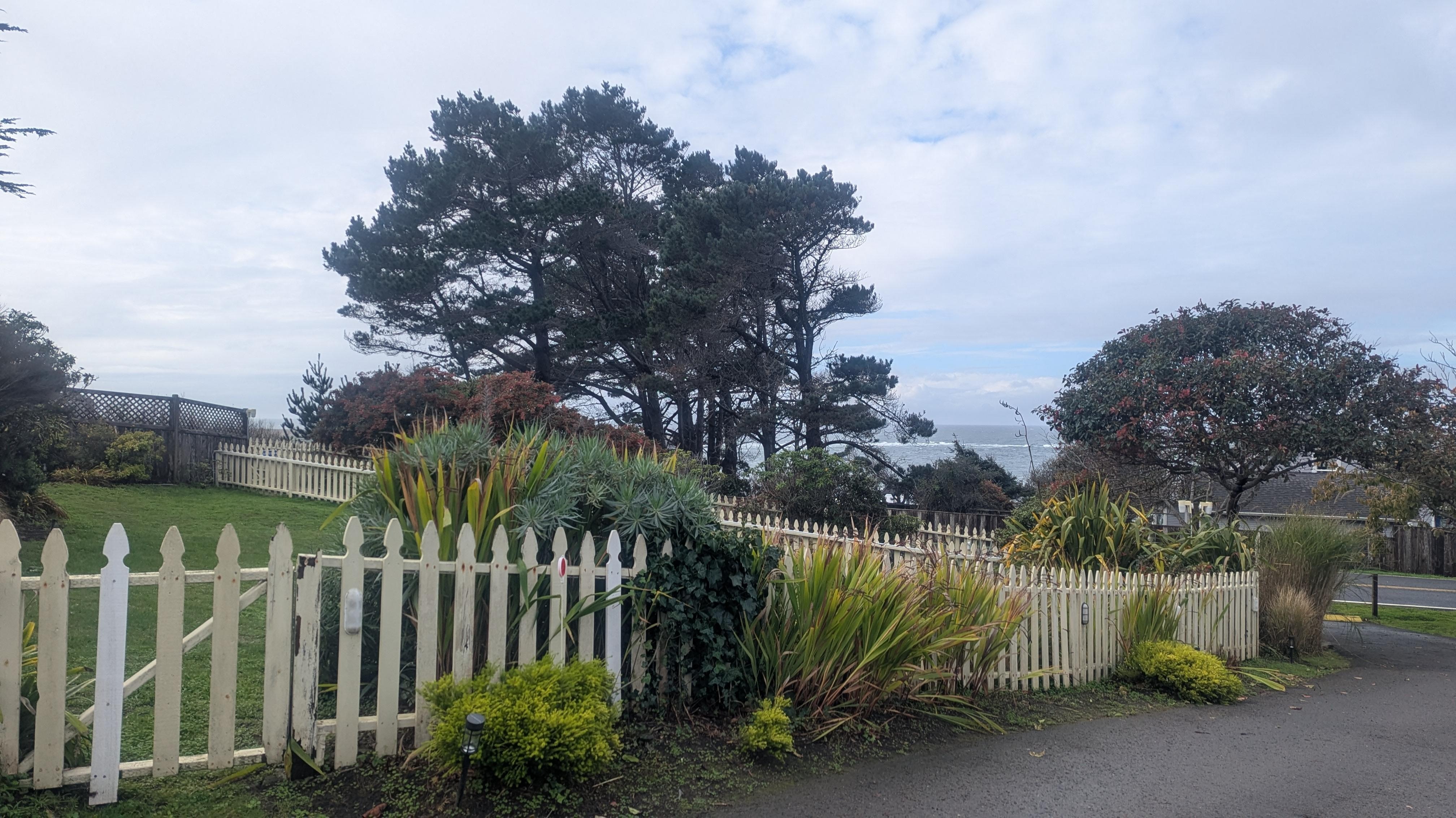 The ocean view in the pictures isn’t quite what you get when you sit on the front porch but you are close enough to hear the waves and glimpse the ocean through breaks in the tree line. Our main complaint is that the bed is super hard. My arms and shoulders kept falling asleep as a side sleeper so I tossed and turned all night for the two nights we stayed. The shower head is awkward -a minor annoyance that maybe they can correct.