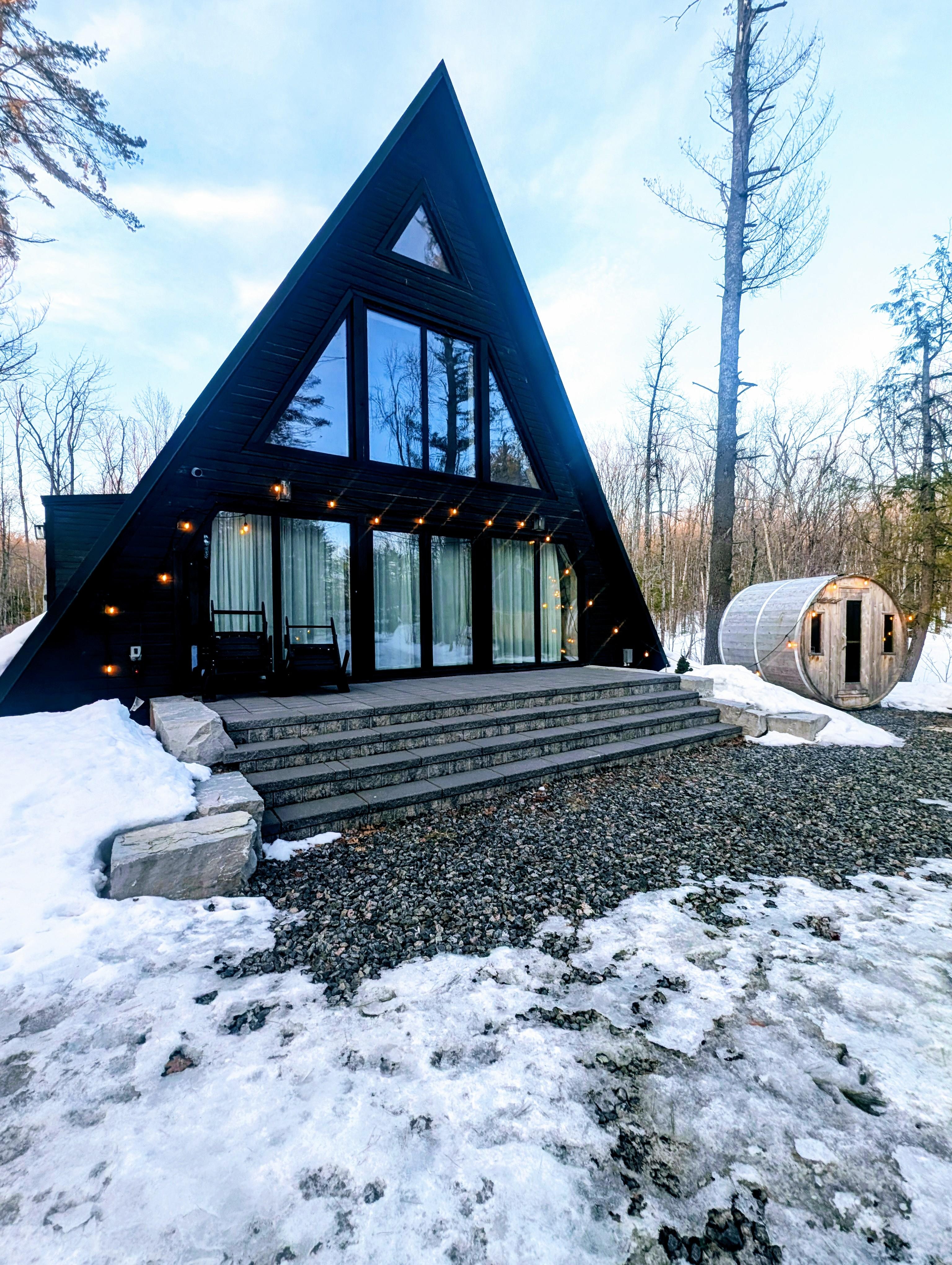Discover this Scandinavian-inspired A-frame nestled among trees, just 1.5 hours from Toronto. With 3 bedrooms, 2 baths, and a fully equipped kitchen, it’s designed for style and comfort. Enjoy lake access, relax by the fire, or explore Muskoka’s trails, breweries, and distilleries. A modern yet tranquil retreat, perfect for families, couples, or friends seeking a peaceful getaway in nature.