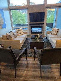 INDOOR/OURDOOR FIREPACE: Our design team added a two sided indoor/outdoor gas fireplace that allows you to enjoy the majestic views of Wilson Mountain under the starry nights and warn glow of golden flames.