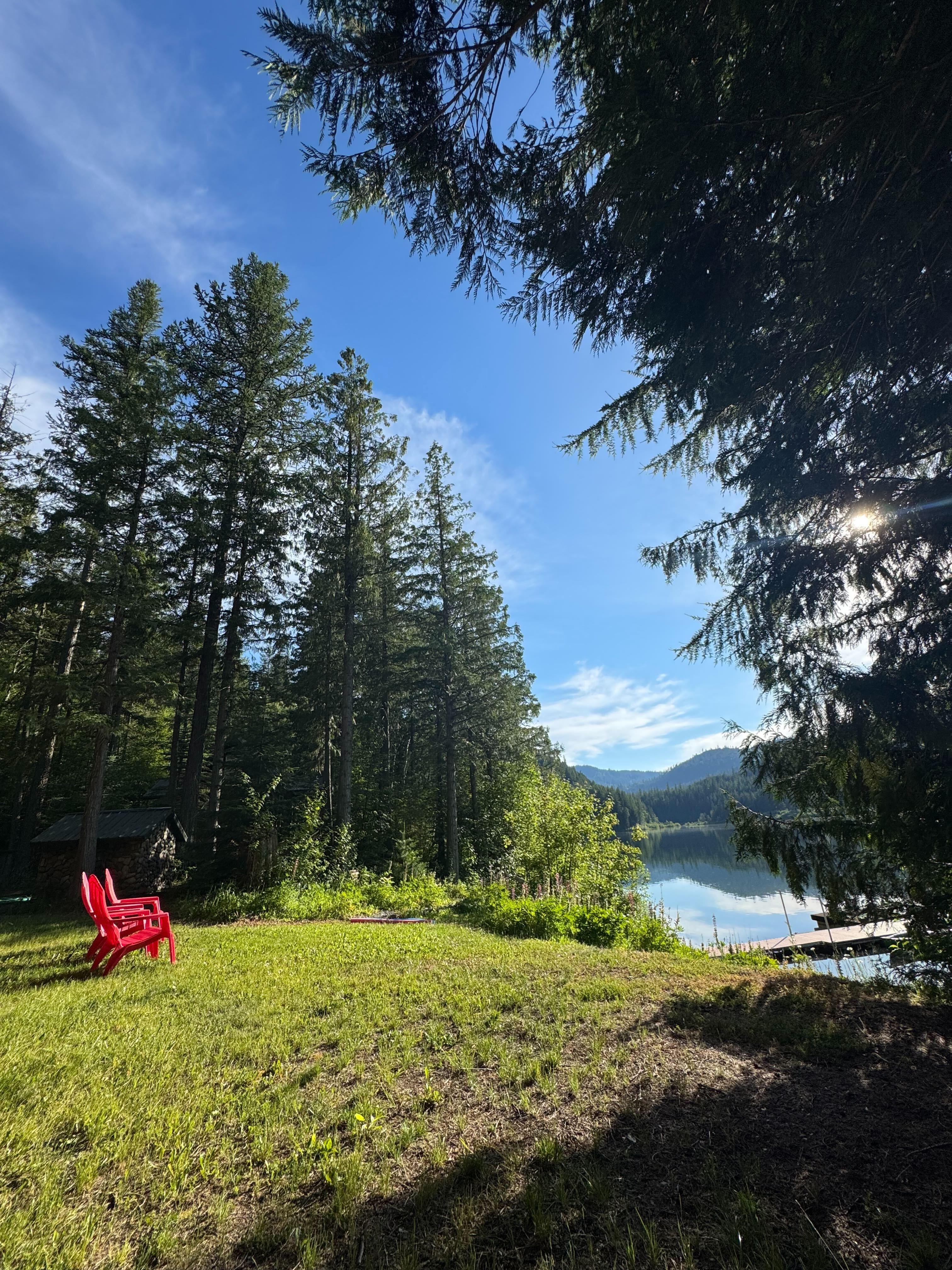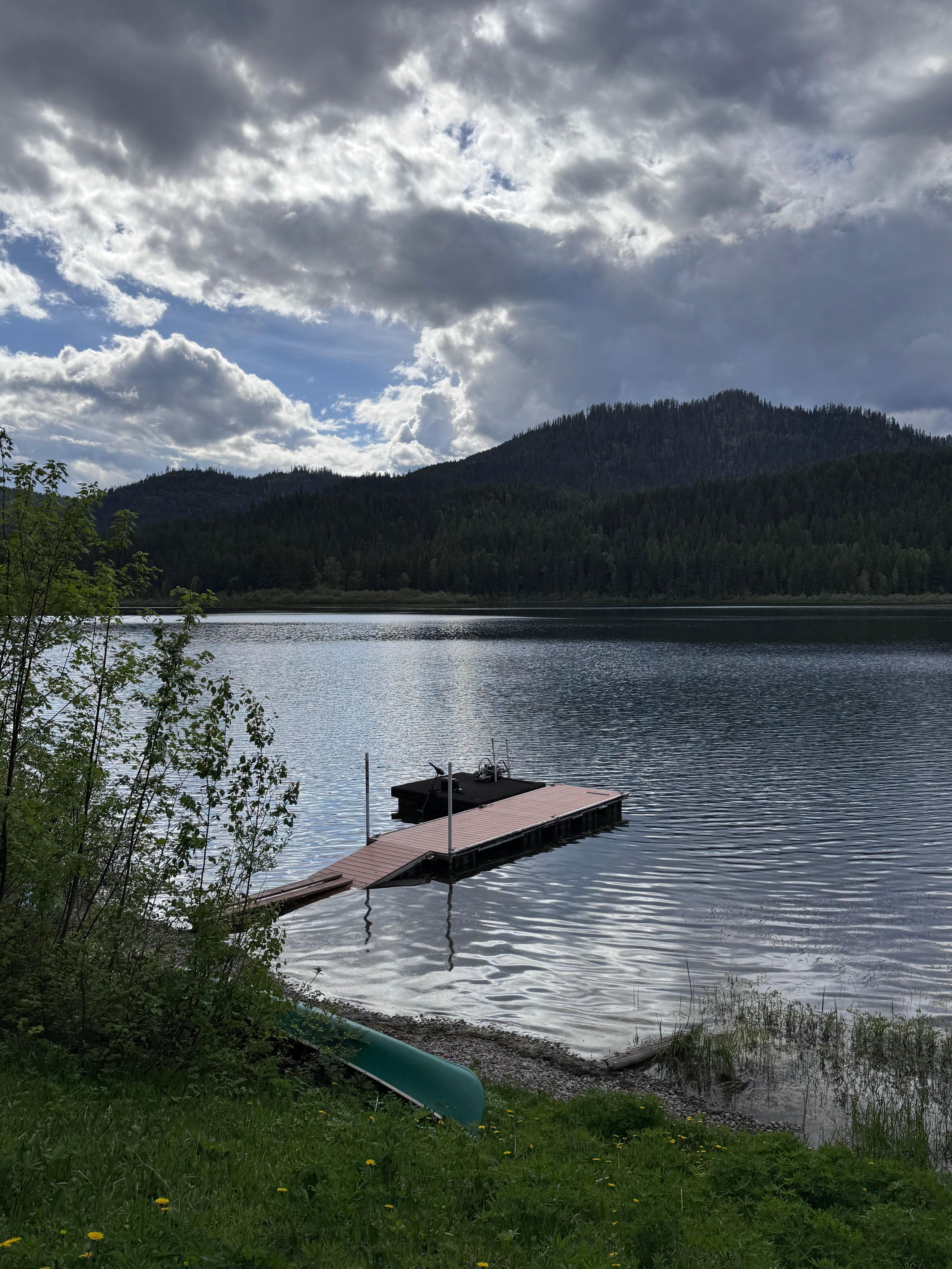 Walk out the door to 2 kayaks or a canoe & listen to the loons sing their greetings on this quiet, serene mountain-surrounded lake. Most summers, we love watching rare mating pairs of loons that nest on the far side of the lake. If they are nesting the Fish, Wildlife & Parks set out white buoys along the far shore that asks you not to go within the space. There are only about 80 mating pairs in the entire state of Montana, so it is a treat to hear them. We occasionally see groups of 5-8 at a time. Bird lovers may also hear both Pileated Woodpeckers, Stellar Jays, Northern Flickers, Robins, Mallard Ducks, Canada Geese, & we have seen Trumpeter Swans on occasion in the spring or fall. Enjoy hummingbirds & keep an eye out for those Bald Eagles & Osprey that often battle each other in the skies over the lake. Seeing them dive or swoop down into the water for a fish is an exhilarating thrill. We have seen muskrats, a few beaver sightings & once a moose cow & her calf strolled the shore to the right & swam from point to point and then the far side brushy area to the left.