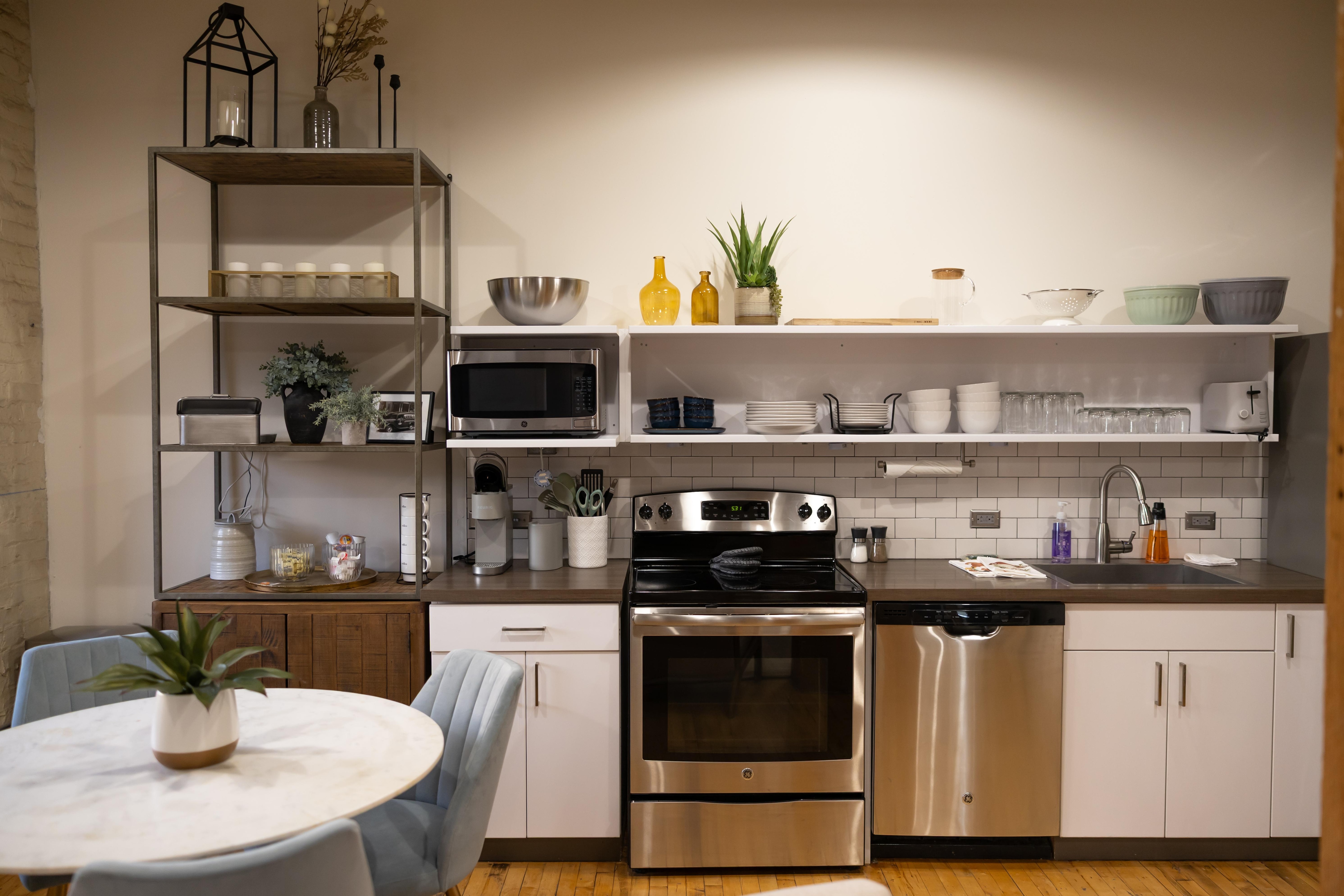 The condo offers two public lots across from the building with additional parking on the street. The kitchen is fully stocked for cooking and includes a mini bar. There is a washer and dryer should you need to do laundry during your stay. The building also has an elevator and a coded entrance.